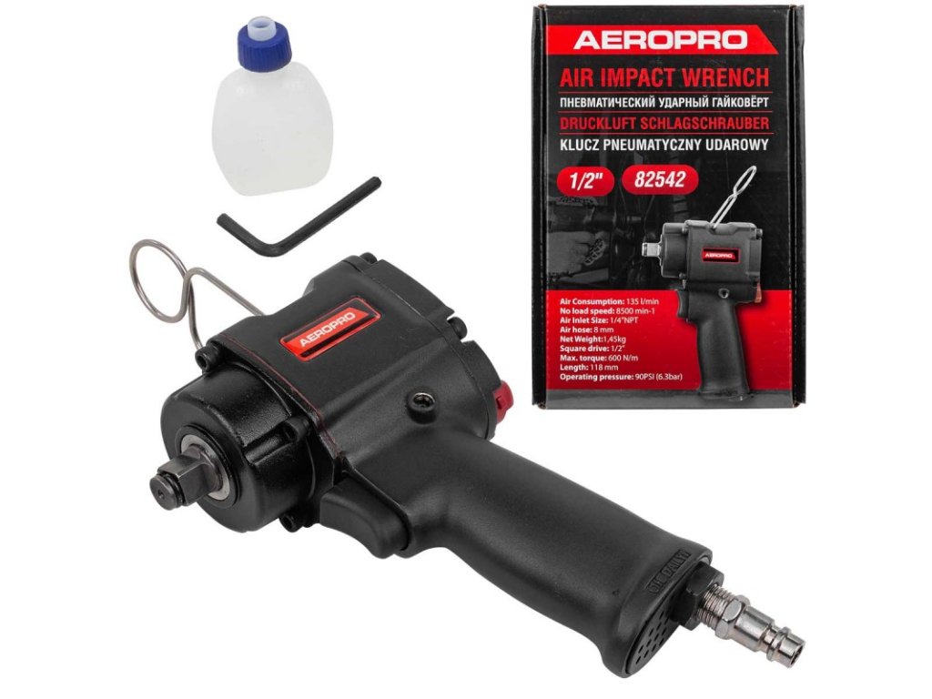 1/2"-os pneumatikus ütvecsavarozó, 600 Nm, kompakt