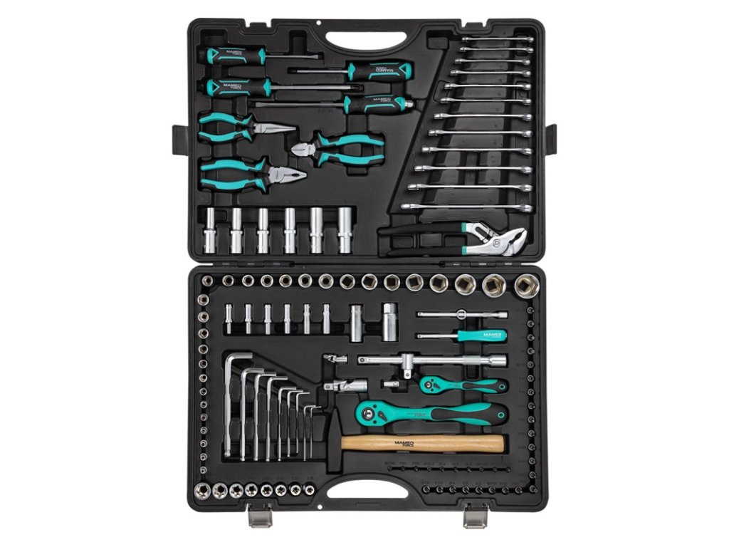 122 darabos szerszámkészlet tokban - racsnis, dugókulcsok és villáskulcsok