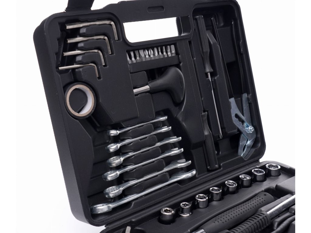 Az erős műanyagból készült koffernak köszönhetően a rend fenntartása és a szerszámok könnyű szállítása könnyen megoldható. Minden szerszámnak megvan a maga kijelölt helye, ahol könnyen megtalálható a szükséges méretű kulcs.