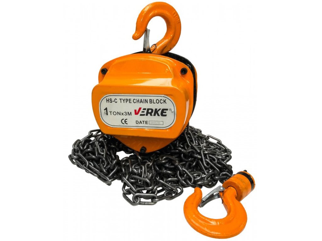 A Verke márkájú kézi lánc emelő kézi meghajtással és áttétellel rendelkezik, amely lehetővé teszi akár 1000 kg-os terhek emelését. A lánc magasan minőségi acélból készült. Az egyes szemeket ellenállásos ívhegesztési eljárással kötik össze, ami biztosítja a megfelelő minőséget és a szemek tartósságát. Az emelő biztonsági horoggal van felszerelve, amely megakadályozza a teher véletlen elengedését.
