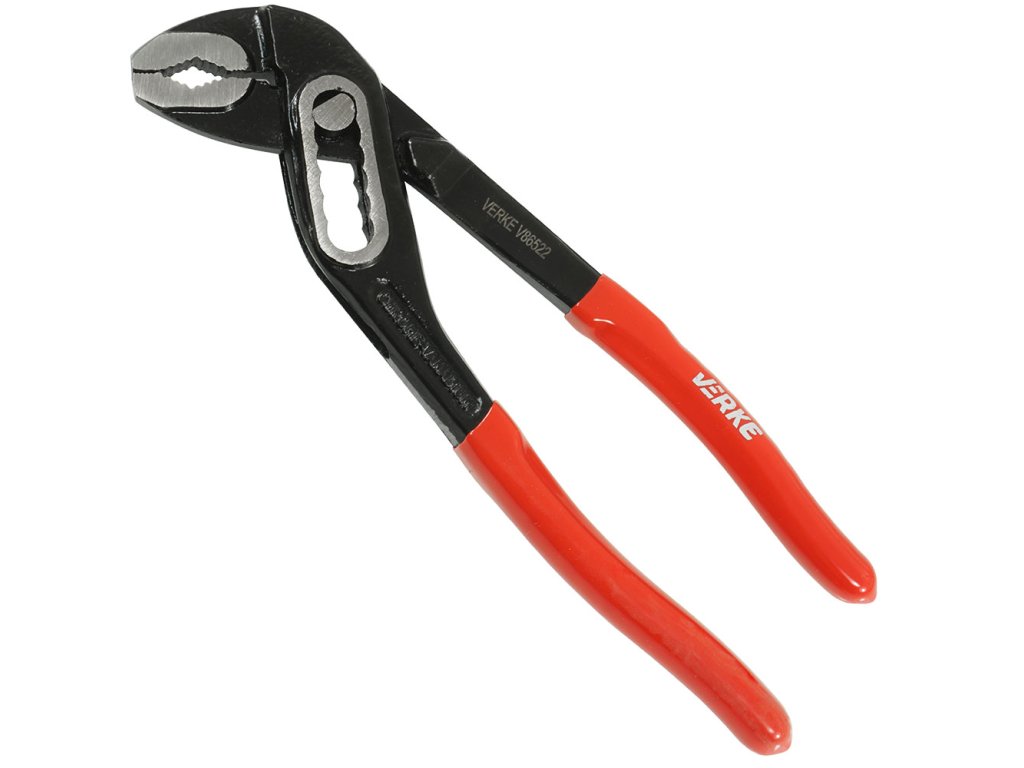 200 mm-es állítható csőfogó. Erős és időtálló csőfogó, amely krom-vanádium acélból (CRV) készült, masszív öntvényből. Az állkapocs teljes szerkezete 6,5 mm-es vastagsággal növeli a fogási felületet, és ezzel egyidejűleg megerősíti a csőfogót. Indukciósan edzett fogazott felület biztosítja a szilárd fogást akár sima csöveken is. Rombuszminta optimális erőátvitelt biztosít. Hat pozícióval rendelkező ízületi mechanizmussal rendelkezik, amely lehetővé teszi az állkapcsok kinyitási szögének beállítását a csövek átmérőjének megfelelően. Az izolált markolat és a különlegesen formázott fogantyúk megakadályozzák a csőfogó kicsúszását a kézből, és növelik a munka kényelmét.