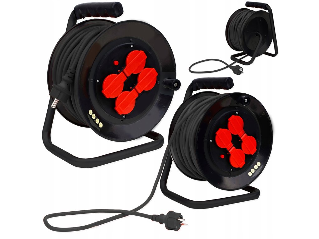 25 m-es hosszabbítókábel dobbal, 3×2,5 mm², 4 aljzat, IP20 védettség