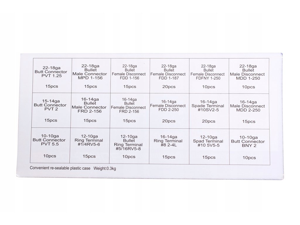 - 260 db különböző méretű, felosztott és jelölt csatlakozó