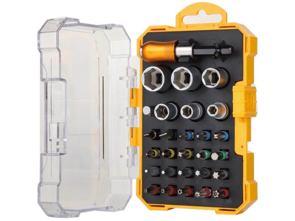 Professzionális bitkészlet különböző méretű bitfejekkel. Kiemelkedő tartóssága, megbízhatósága, precíz kidolgozása, magas minőségű anyagai, modern felépítése és más előnyei biztosan kielégítik az igényes felhasználókat. Minden egy praktikus tokban van elrendezve, amely megkönnyíti a rendelkezésre álló eszközök gyors áttekintését.