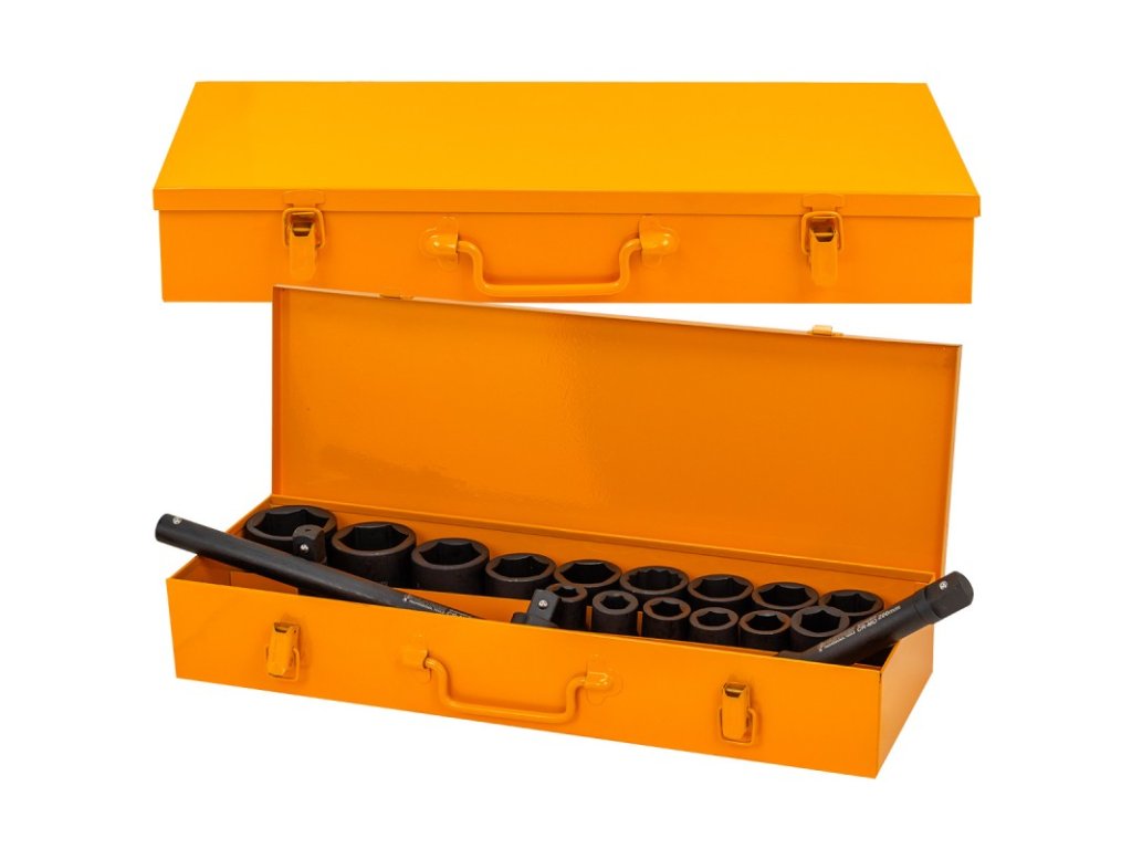 - 3/4"-os dugókulcsok 16 db, 6 oldalú - 17, 19, 21, 22, 24, 27, 30, 32, 34, 35, 36, 36 (12 oldalú), 38, 41, 46, 50 mm;