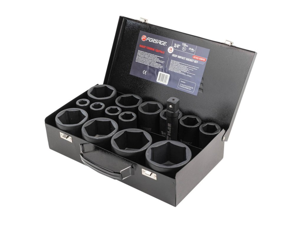 A professzionális 3/4"-os dugókulcskészlet nagy teherautókhoz és mezőgazdasági gépekhez alkalmas. Masszív anyagainak köszönhetően hosszú élettartam jellemzi. Minden autójavító műhely nélkülözhetetlen tartozéka, ideális nagy csavarok kilazításához vagy meghúzásához. Minden dugókulcs és adapter egy praktikus tokban található. A készlet 14 darabot tartalmaz. A tok biztonságos szállítást garantál a spontán kinyílás veszélye nélkül.