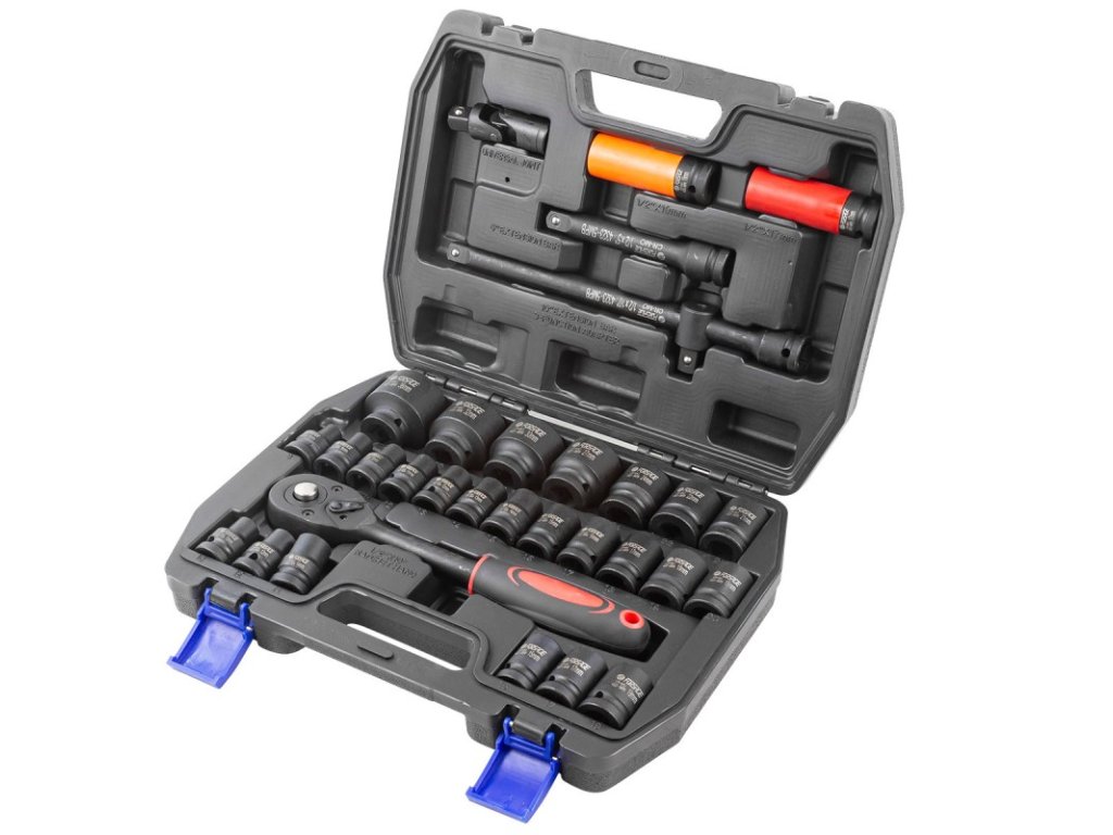 - 1/2"-os imbusz dugókulcsok: 8, 9, 10, 11, 12, 13, 14, 15, 16, 17, 18, 19, 20, 21, 22, 24, 27, 30, 32 mm