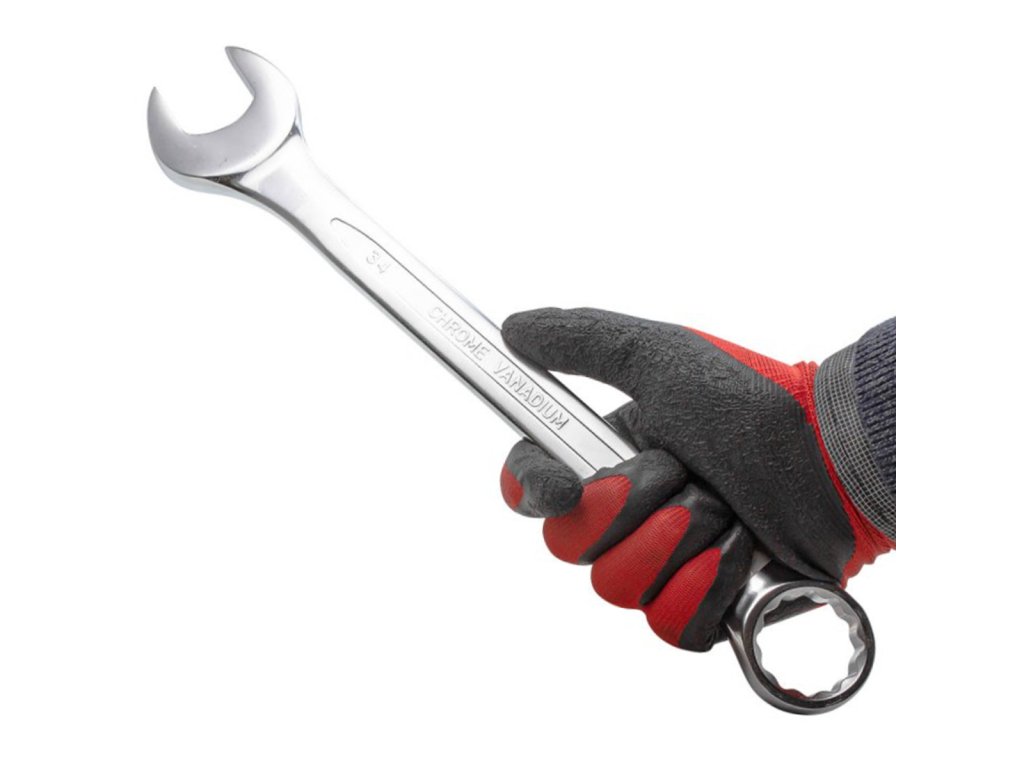 Kombinált villáskulcs, 15°-os eltolással, szénacélból, krómozott, szatinált szerszámfelület.
