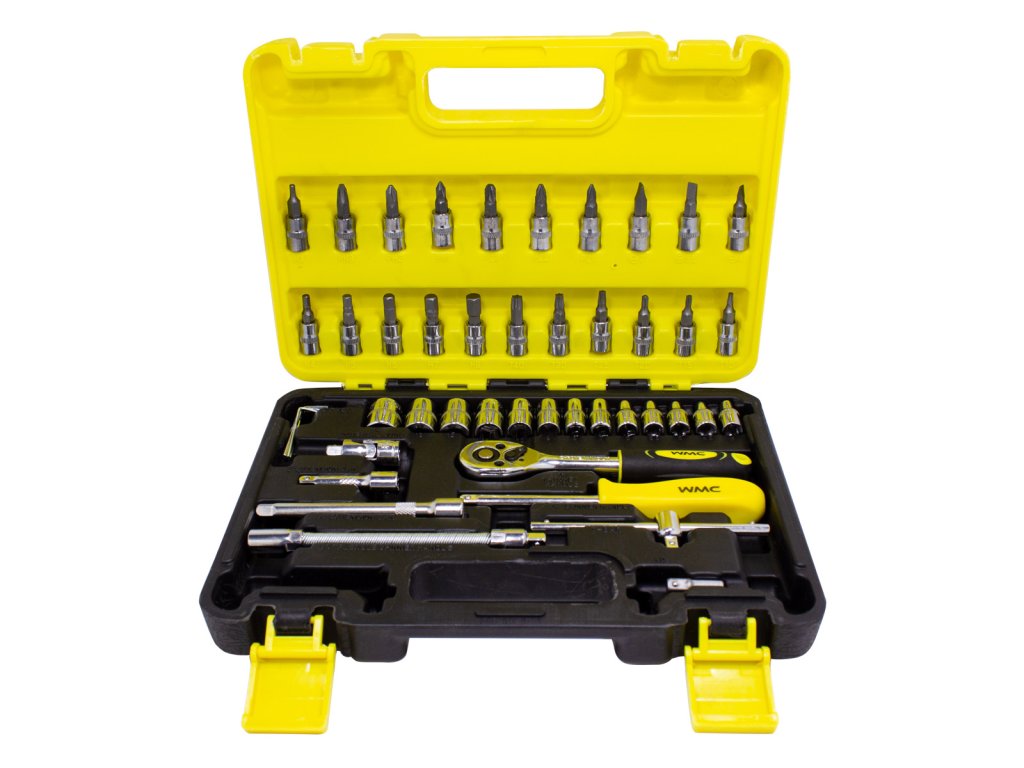 A készlet tartalmaz egy strapabíró fogazású racsnit. A készlet dugókulcsok széles választékát tartalmazza (4-14 mm méretekben), beleértve a gyújtógyertya-dugókulcsokat, valamint bitek széles választékát (lapos, keresztfejű PH, Pozidriv, hatszögletű HEX és TORX). A tartozékok között található egy hosszabbító (köztük egy flexibilis), egy univerzális csatlakozó, imbuszkulcsok, egy T-nyél és egy bittartó. Minden elem áttekinthetően elrendezett egy praktikus tokban. A készlet professzionális és otthoni használatra egyaránt alkalmas. A professzionális megmunkálás és a hőkezelt króm-vanádium acél garantálja a szilárdságot és a tartósságot. Minden méret jelölve van a könnyű használat érdekében.