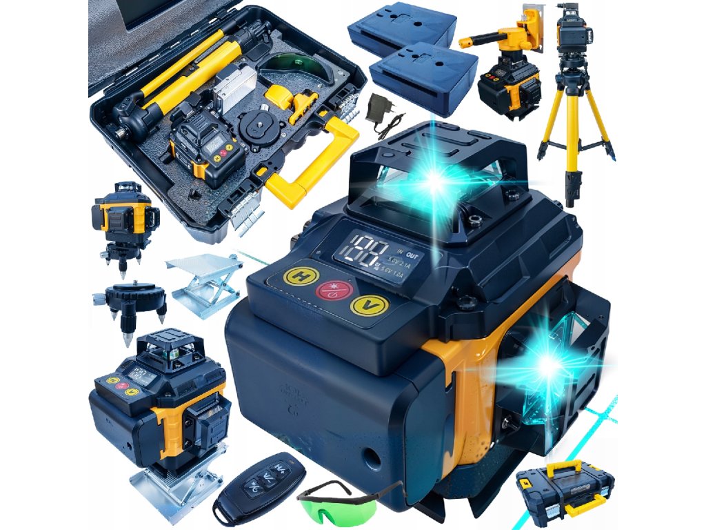 Ez a 4D 360° önszintező kereszt lézer állvánnyal zöld rendkívül nagy teljesítményű, és akár 40 méteres hatótávolságával ideális eszköz építési és szerelési munkákhoz. A zöld lézer, amely nagy láthatóságot biztosít, és automatikus szintezése lehetővé teszi vízszintes, függőleges és ferde vonalak pontos beállítását. A lézer állvánnyal és széleskörű kiegészítőkínálattal érkezik, amelyek megkönnyítik a használatát a szerelési, telepítési vagy építési munkák során.