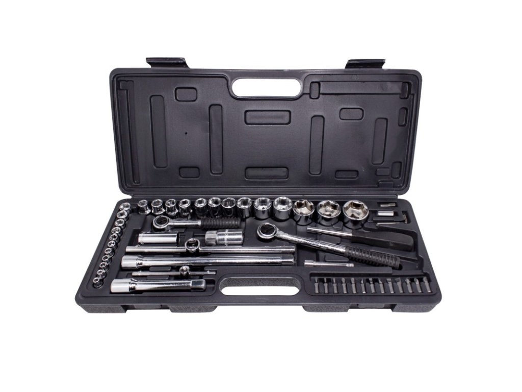 A dugókulcs készlet 52 darabból áll, kiváló minőségű króm-vanádium acélból készült.