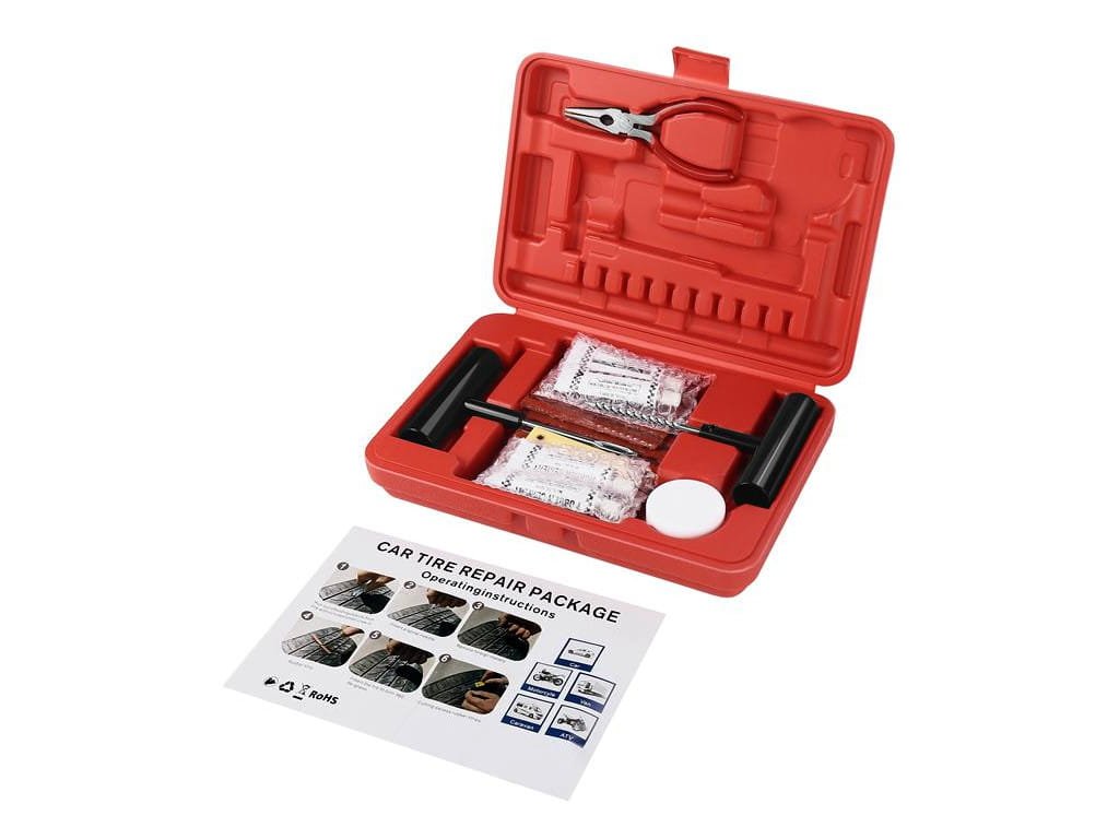 Az összesen 58 alkatrészből álló készlet lehetővé teszi a defektált gumiabroncsok többszöri javítását, ami időt és pénzt takarít meg. Minden alkatrész egy praktikus műanyag tokkal van tárolva, amely megkönnyíti a tárolást és a szállítást. A szerszámok tartós anyagokból készültek, ami garantálja a hosszú élettartamot és a biztonságos használatot.