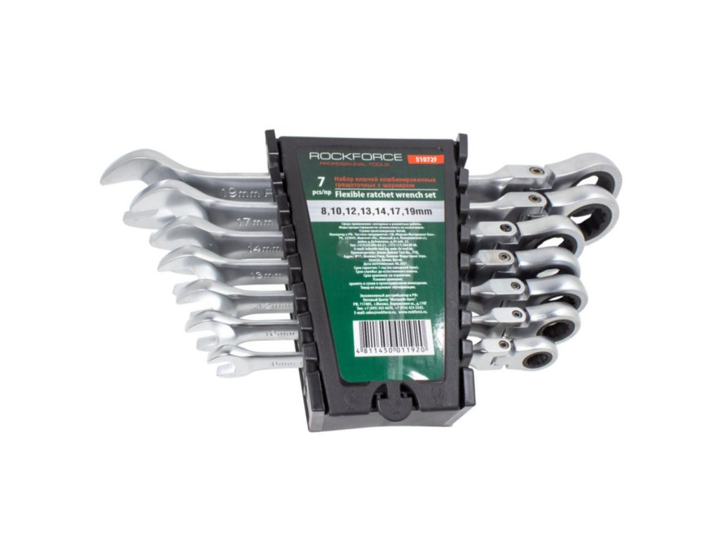 7 darabos racsnis és csuklós villáskulcs-készlet.