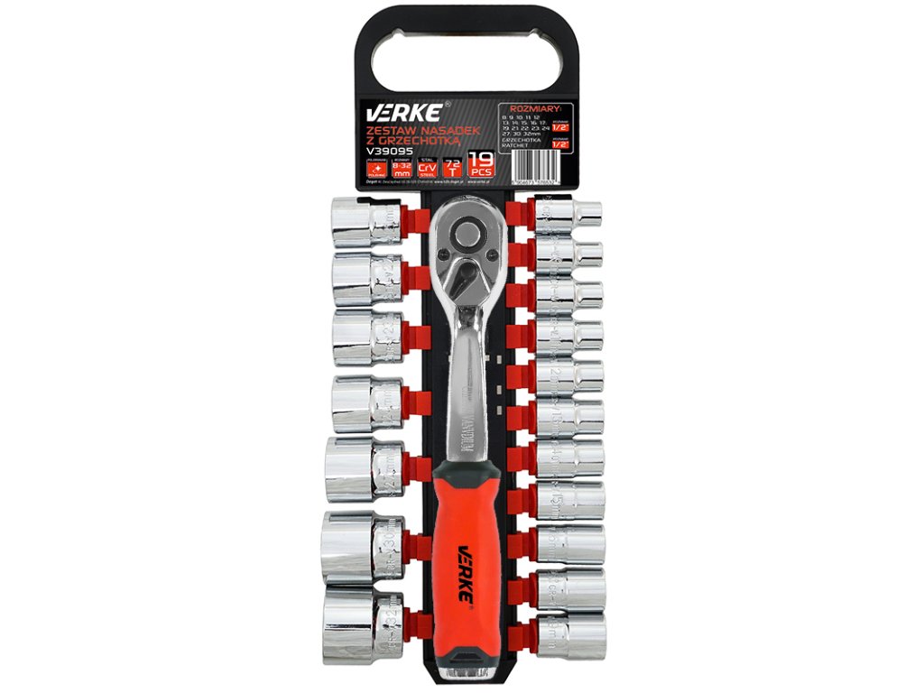 72T racsnis dugókulcs készlet, 1/2", 19 db VERKE V39095
