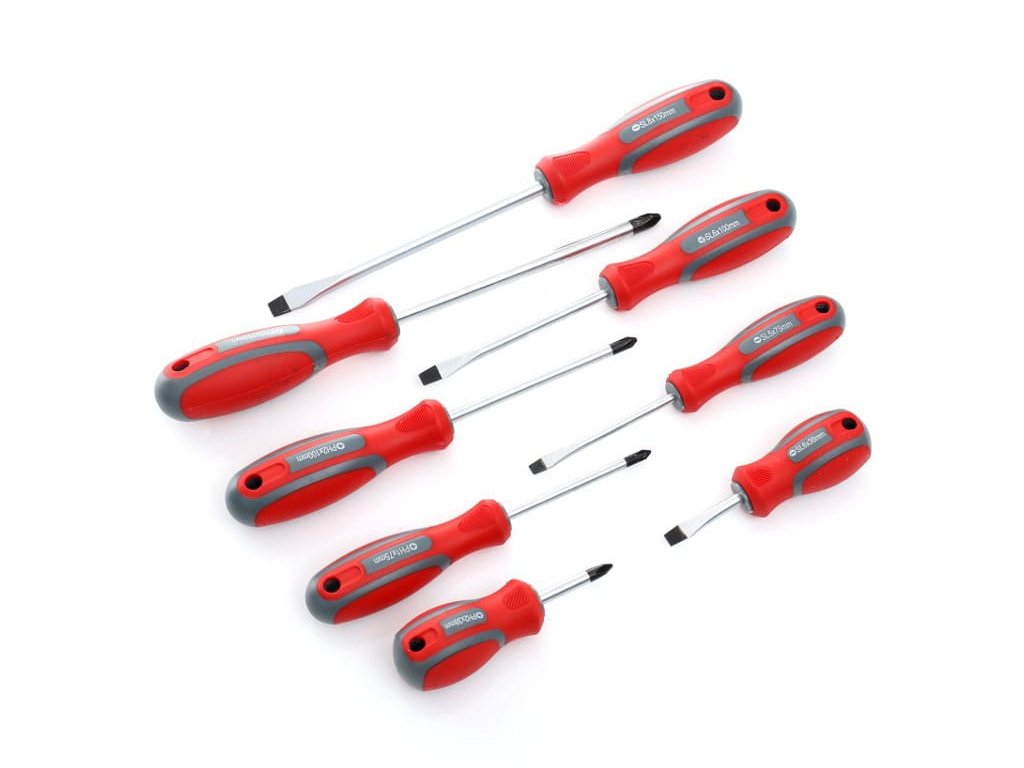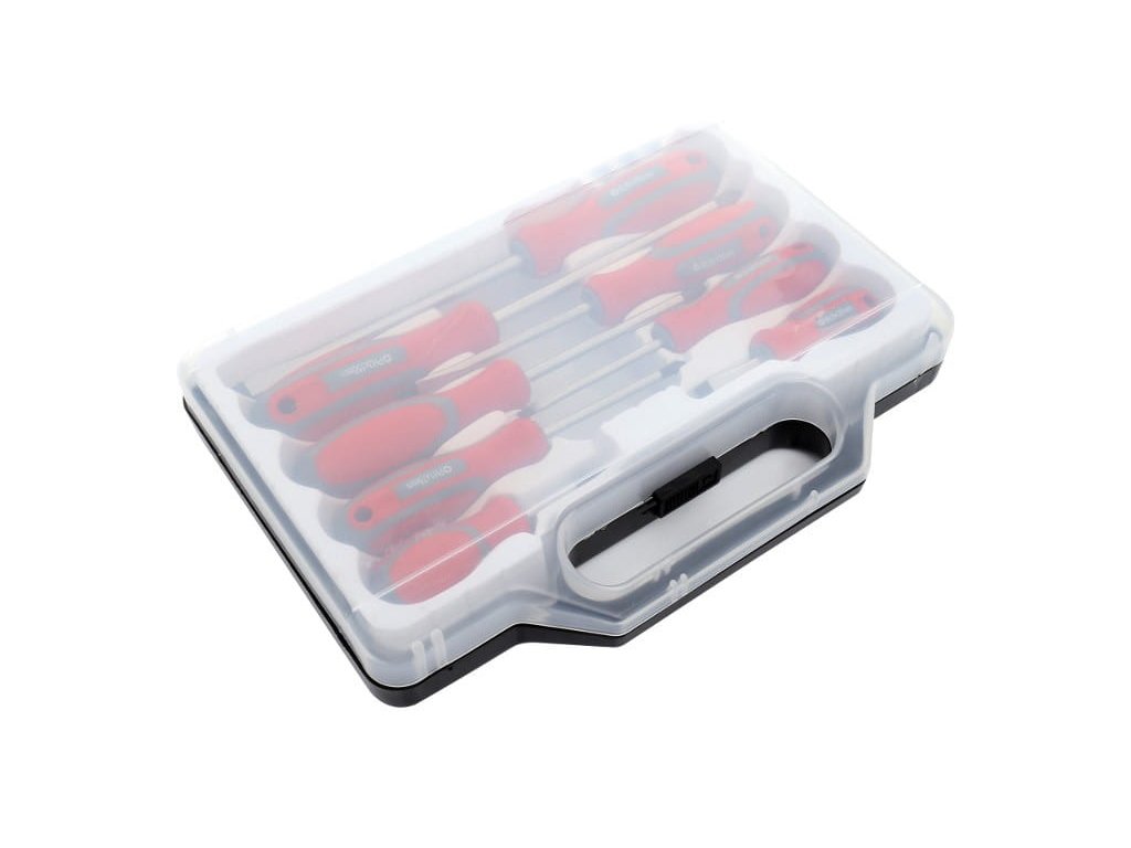8 részes csavarhúzó készlet KD10252. A készlet lapos és kereszthorny csavarhúzókat tartalmaz összesen 8 darabban. A készlet csavarhúzói kiváló minőségű anyagokból készültek, köztük króm-vanádium acélból (CrV). A hegyek szaténfelületűek, amelyek védik a korróziót, továbbá edzettek, csiszoltak és mágnesesek, ami lehetővé teszi a csavarfej biztonságos megfogását. A markolat műanyagból készül, és gumírozott bevonattal van ellátva, amely biztos fogást ad a kézben.