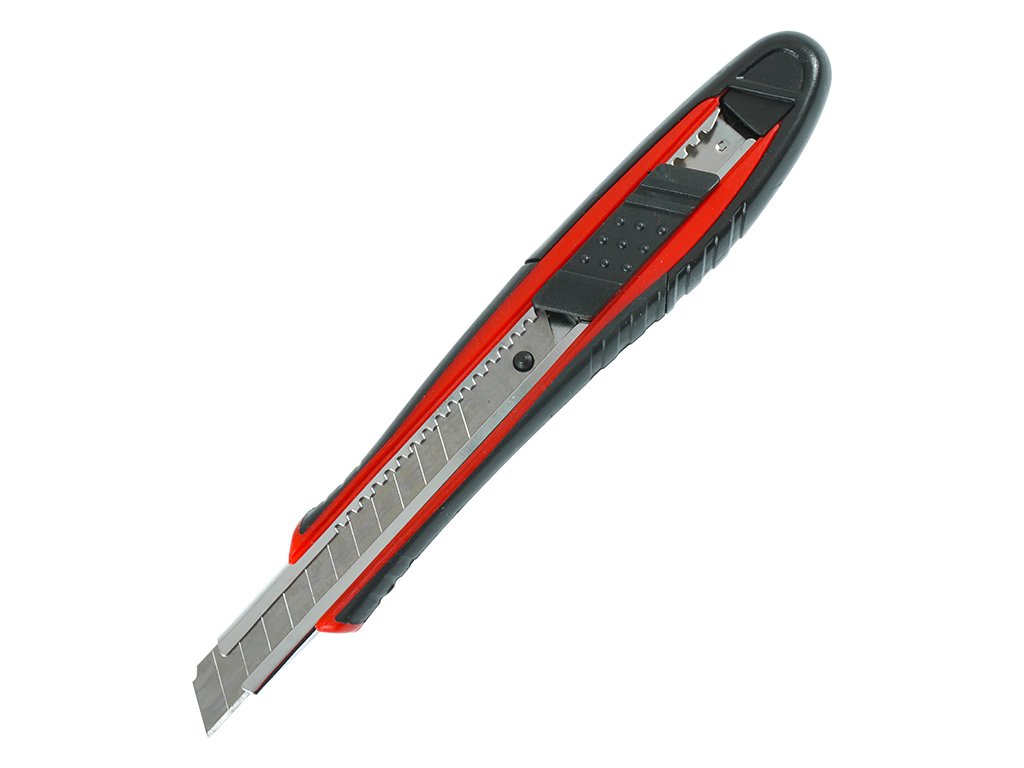 Univerzális kés, 9 mm-es törhető pengével, amely tökéletesen alkalmas tapéták, kartonok, kábelek vagy szőnyegek vágására.