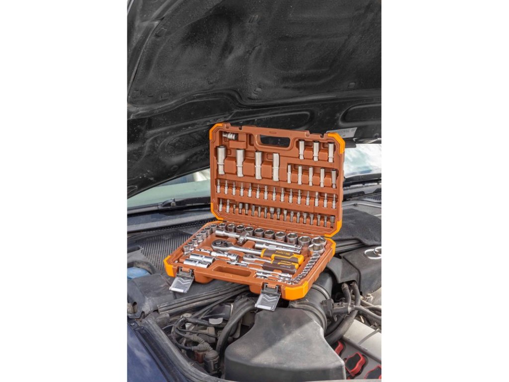 Minden szerszám biztonságosan tárolható egy fémzáras műanyag tokban , így biztosítva a kényelmes és kompakt szállítást. A készlet ideális autósok, autószerelő műhelyek és műhelyek számára.