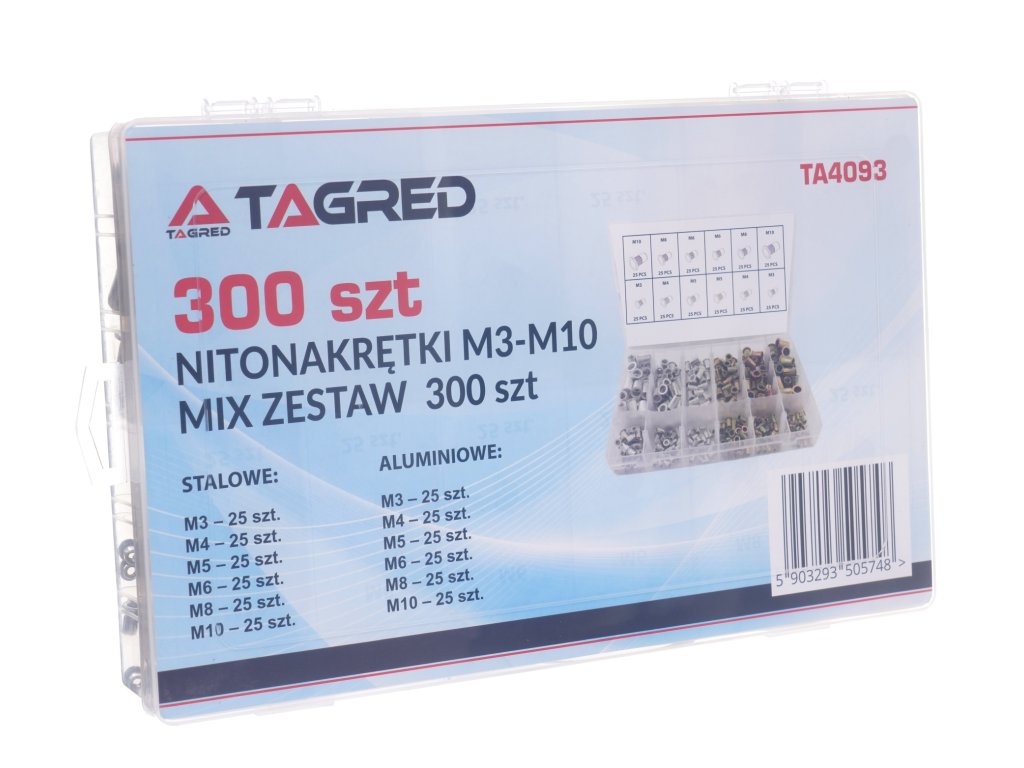 Acél- és alumínium szegecsanyák M3-tól M10-ig tökéletes megoldást jelentenek rögzítési igényeihez. Ezek a szegecsanyák hengerded drágázott alátéttel rendelkeznek, amely biztosítja a szorosabb tapadást a rögzített anyaghoz. A TAGRED márkájú szegecsanyák lehetővé teszik a metrikus menetes csavarok vagy csavarok beszerelését fémlemezbe vagy más anyagokba, ahol a menet kialakításának lehetősége problémás lehet.