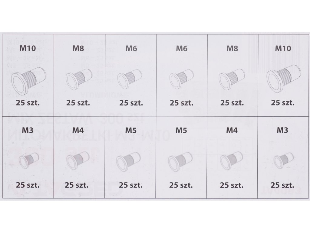 Acél- és alumínium szegecsanyák M3 M4 M5 M6 M8 M10 - 300 db