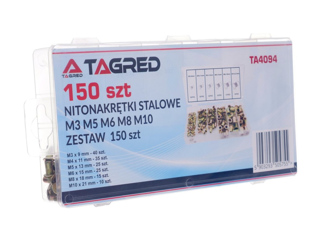 A TAGRED szegecsanyák lehetővé teszik a csavar vagy facsavart kényelmesen behajtani metrikus menettel ellátott lemezekbe vagy más anyagokba, ahol nem lehetséges menetet készíteni. Ez a sokoldalúság és minőség nélkülözhetetlenné teszi minden barkácsoló vagy szakember számára.