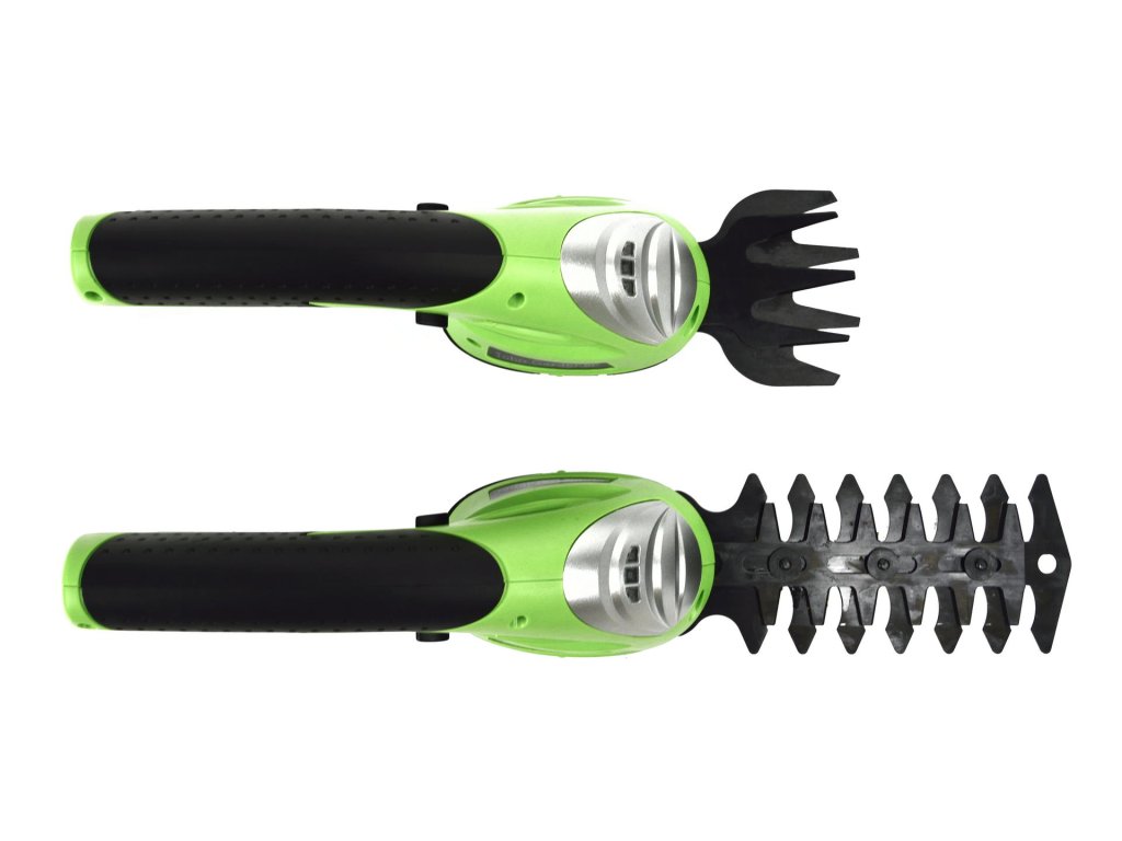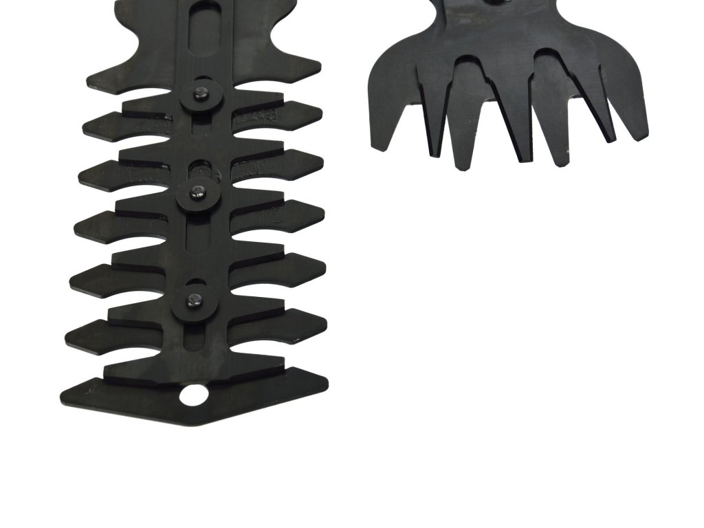 - Két, cserélhető penge különböző célokra – egy a fű vágására, a másik az élőkertek és bokrok nyírására