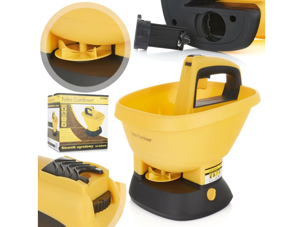 Akkumulátoros kerti vetőgép egy innovatív megoldás a magok gyorsabb vetésére. Ez a négy AA elemmel működő készülék ideális a fű vetésére és trágyázására. Akkumulátoros vetőgép hatékonyan és egyenletesen szórja szét a magokat akár 2 méteres terjedelemben.