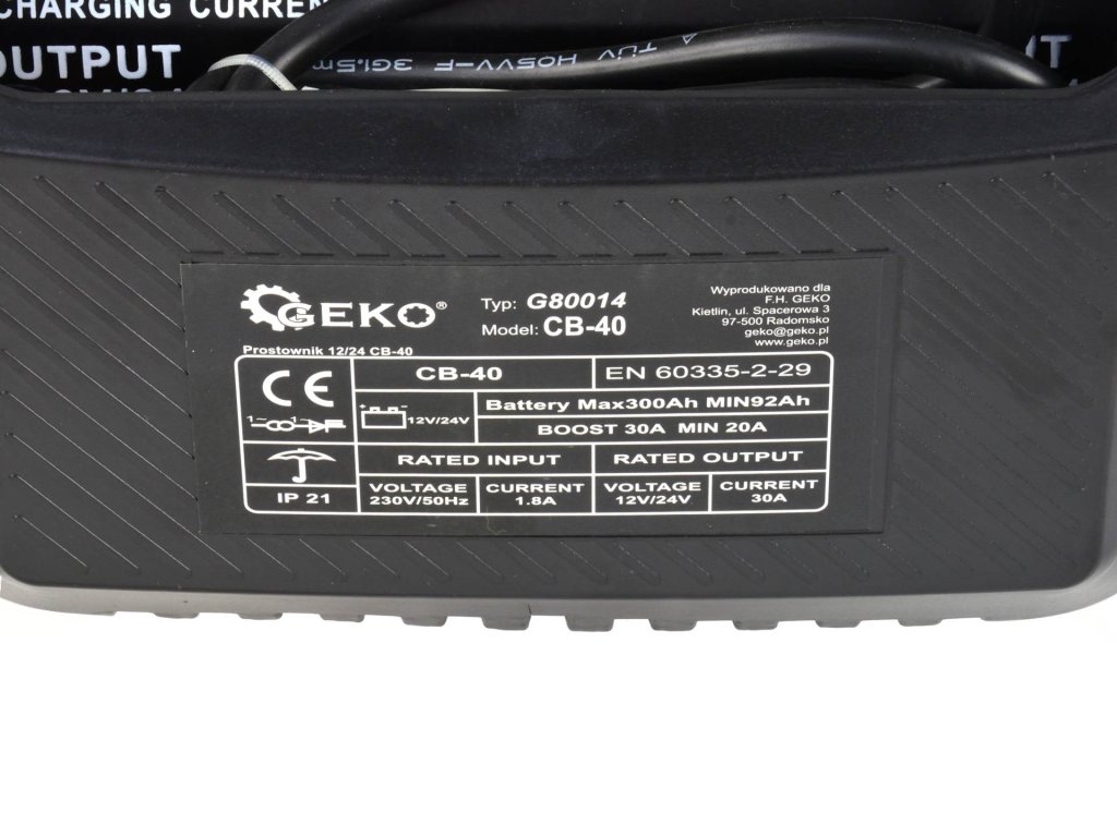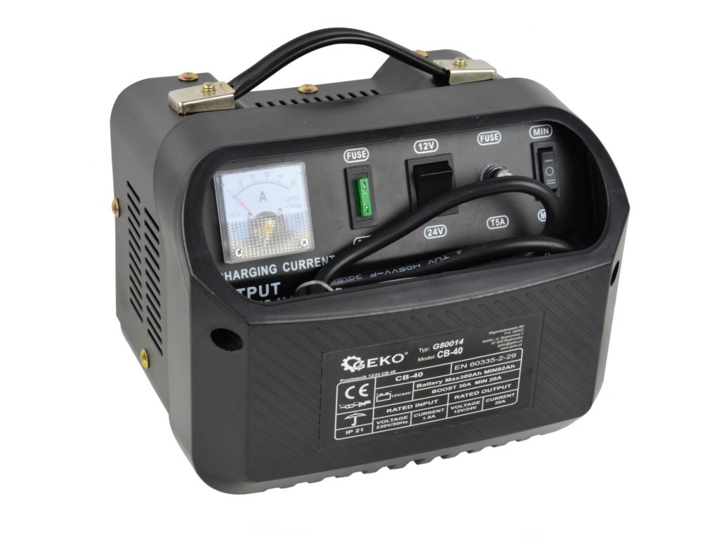 Akkumulátortöltő 12/24V CB-40 ideális megoldás ólomakkumulátorok (STD) töltésére, 12V vagy 24V feszültséggel, amelyeket személygépkocsikban, furgonokban, teherautókban stb. használnak. Ez az eszköz beépített biztosítékkal rendelkezik, amely megvédi a készüléket a pólusok helytelen csatlakoztatása és a rövidzárlat ellen.