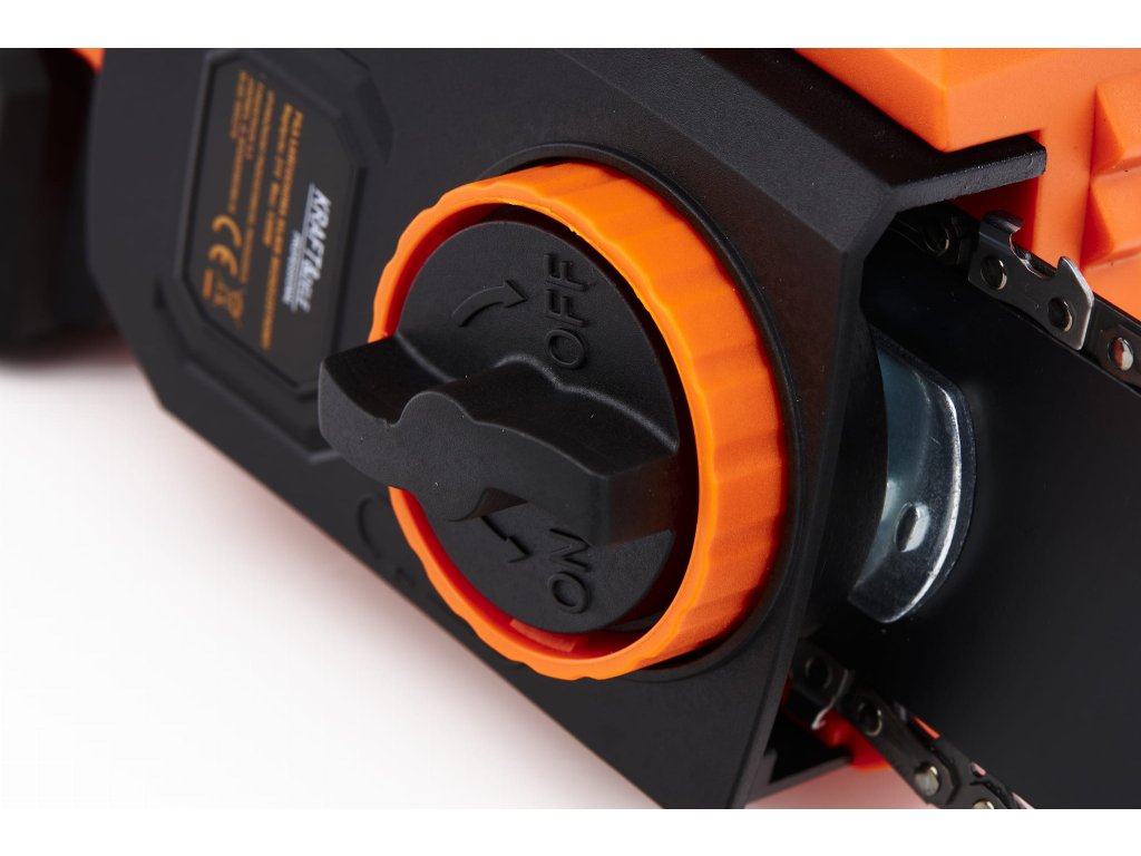 Professzionális akkumulátoros fűrész a Kraft&Dele márkától, a KD10643 modell, kényelmes eszköz kertbe vagy gyümölcskertbe, ideális apró feladatokhoz. A fűrész fő előnye a munka közbeni szabadság és a könnyű kezelés. Nincs szükség kábelekre vagy üzemanyagokra, elegendő az akkumulátor feltöltése. Könnyedén kivághat ágakat még magasságban is, kábelek összekuszálódása nélkül.