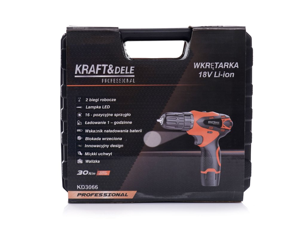 Akkus fúrógép/csavarhúzó 18 V Li-ion KD3066 a Kraft&Dele márkájú professzionális készülék, amely kiemelkedő ergonómiai kialakítással, bevált és masszív felépítéssel és magas ellenállóképességgel büszkélkedhet.