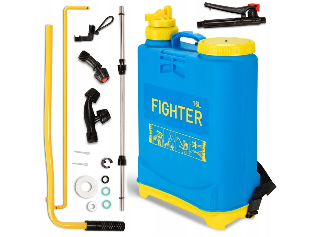 Magas minőségű akkus hátizsákos permetező űrtartalma 16 liter, amely ideális eszköz a folyadékok hatékony és kényelmes permetezésére nagy területeken, legyen szó kertészeti növényekről, cserjékről vagy fákról. Ez a modell teleszkópos üvegszálas kézítővel rendelkezik, amelynek hossza 50 cm, és két különböző fúvókával van felszerelve, amelyek lehetővé teszik a permetezési típusok beállítását az igények szerint. A permetező működése kézi pumpán alapul, amely nyomást generál a folyadék könnyű permetezéséhez.