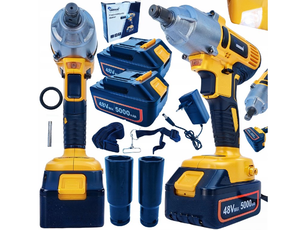 A 48 V-os akkus ütvecsavarozó egy erőteljes és praktikus eszköz, amely ideális műhelyekben, építkezéseken és járműkarbantartásban végzett munkához. Ez a kulcs 380 Nm maximális nyomatékot biztosít kicsavaráskor és 320 Nm maximális nyomatékot meghúzáskor, így megbízható teljesítményt biztosít még szorosan meghúzott csavarok és anyák esetén is.
