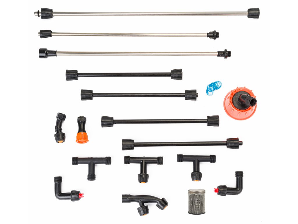 A permetezéshez szükséges összes alkatrész, mint például csövek, hosszabbítók, csatlakozók, fúvókák és tömítések, lehetővé teszi egy rendkívül kényelmes és személyre szabott permetezési rendszer kialakítását következő célokra: