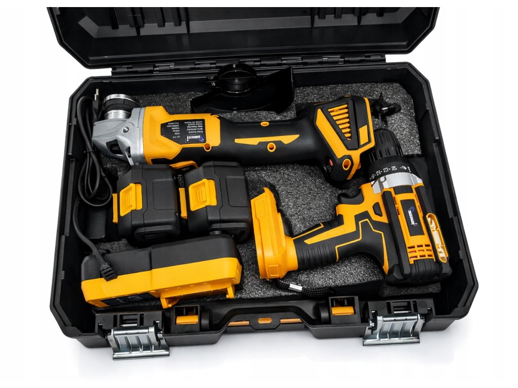 Maximális felszereltség, maximális teljesítmény – az Ondragon akkumulátoros készlet két nélkülözhetetlen eszközt egyesít minden műhelyben: egy nagy teljesítményű, szénkefe nélküli ütvefúrót és egy kompakt, szénkefe nélküli sarokcsiszolót. Mindkét eszközt 36V Li-Ion akkumulátorok táplálják, amelyek nagy teljesítményt és hosszú üzemidőt biztosítanak egyetlen feltöltéssel. Minden egy strapabíró bőröndbe van csomagolva, tartozékokkal a kényelmes és hatékony használat érdekében otthon, az építkezésen és terepen egyaránt.