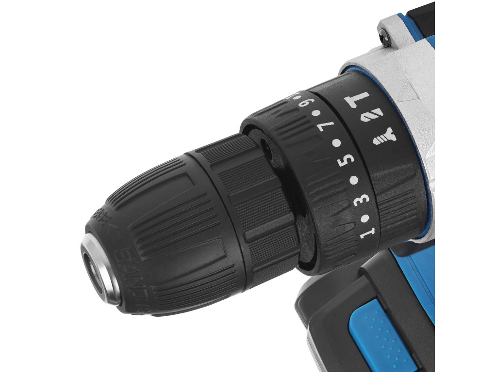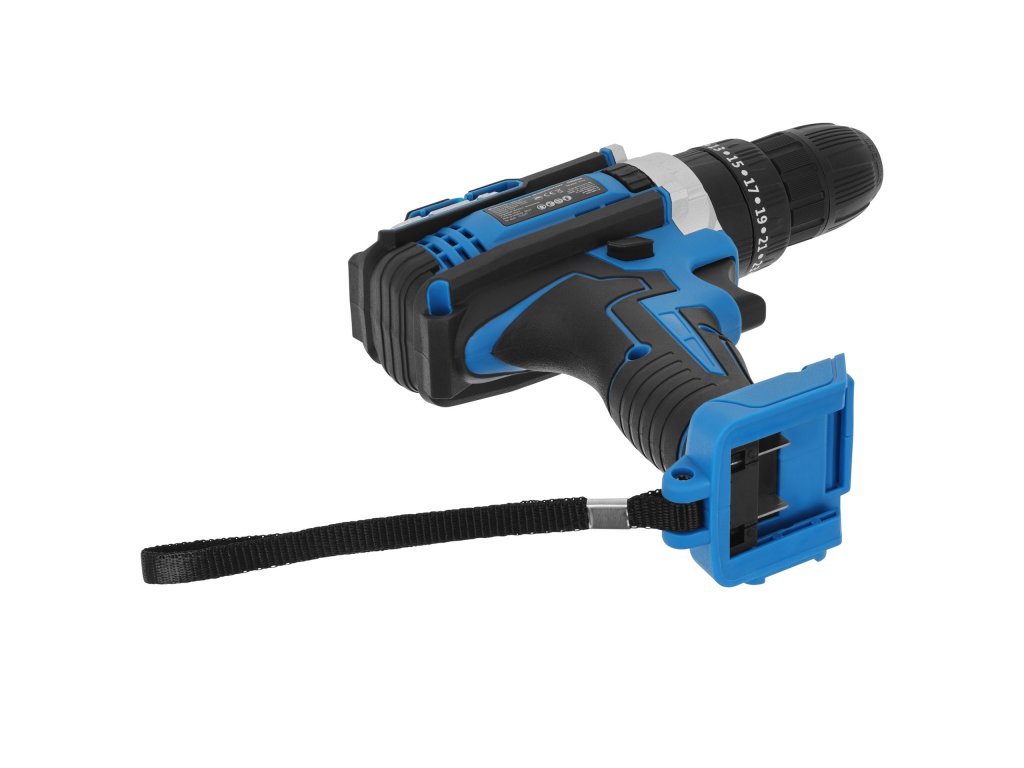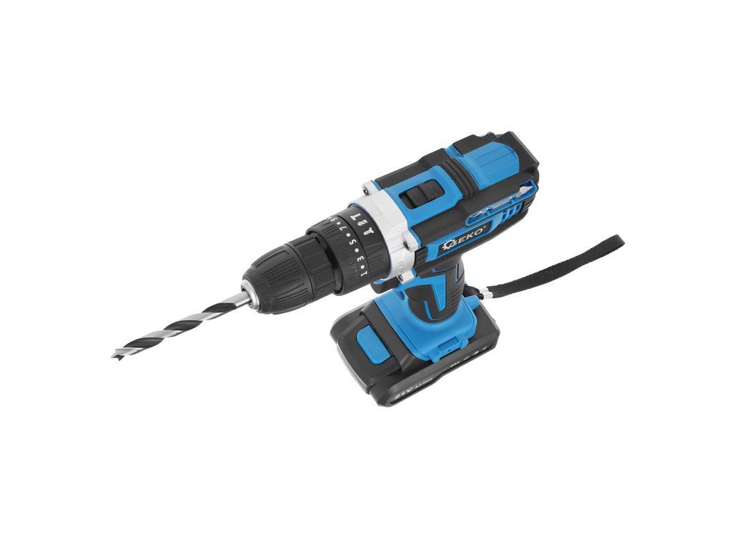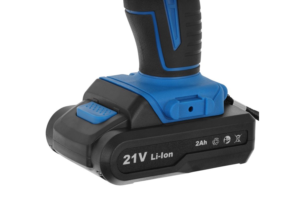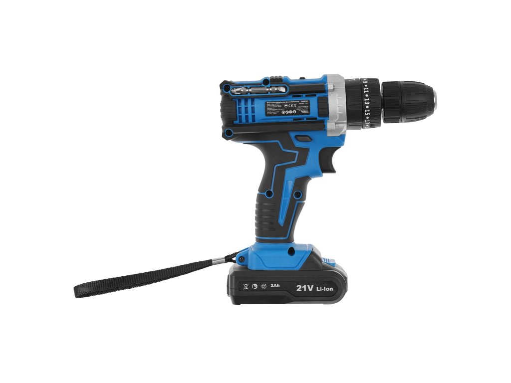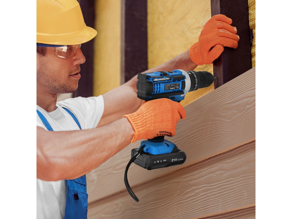 Akkus ütvefúrógép 21V 2x akkumulátor 2Ah G80656 ideális különböző anyagok fúrásához, valamint csavarok, csavarozók és önfúró csavarok behajtásához és kihajtásához. A készlet két darab 2Ah kapacitású akkumulátort, töltőt és egy praktikus műanyag tárolótojákat tartalmaz.
