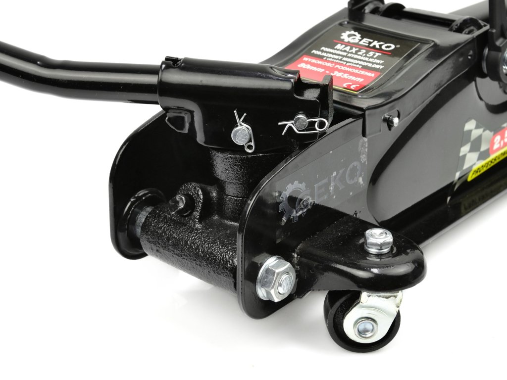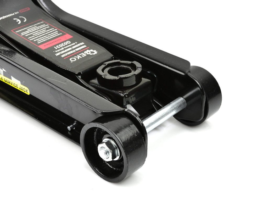 A "béka" típusú hidraulikus emelő masszív, fém elülső kerekekkel és forgatható hátsó golyóscsapágyas kerekekkel van felszerelve, amelyek biztosítják a stabil működést és a nagy mobilitást. Alacsony profilú felépítése miatt ideális autószervizek számára, amelyek az alacsony hasmagasságú, sport- és tuningautók javítására specializálódtak.
