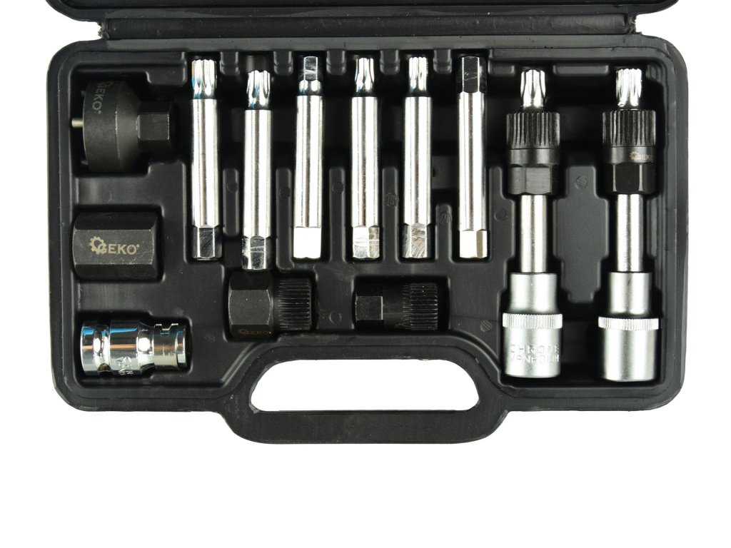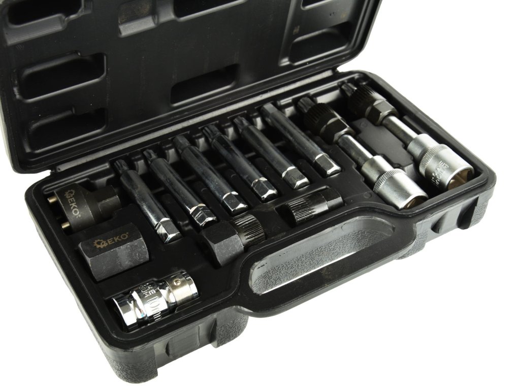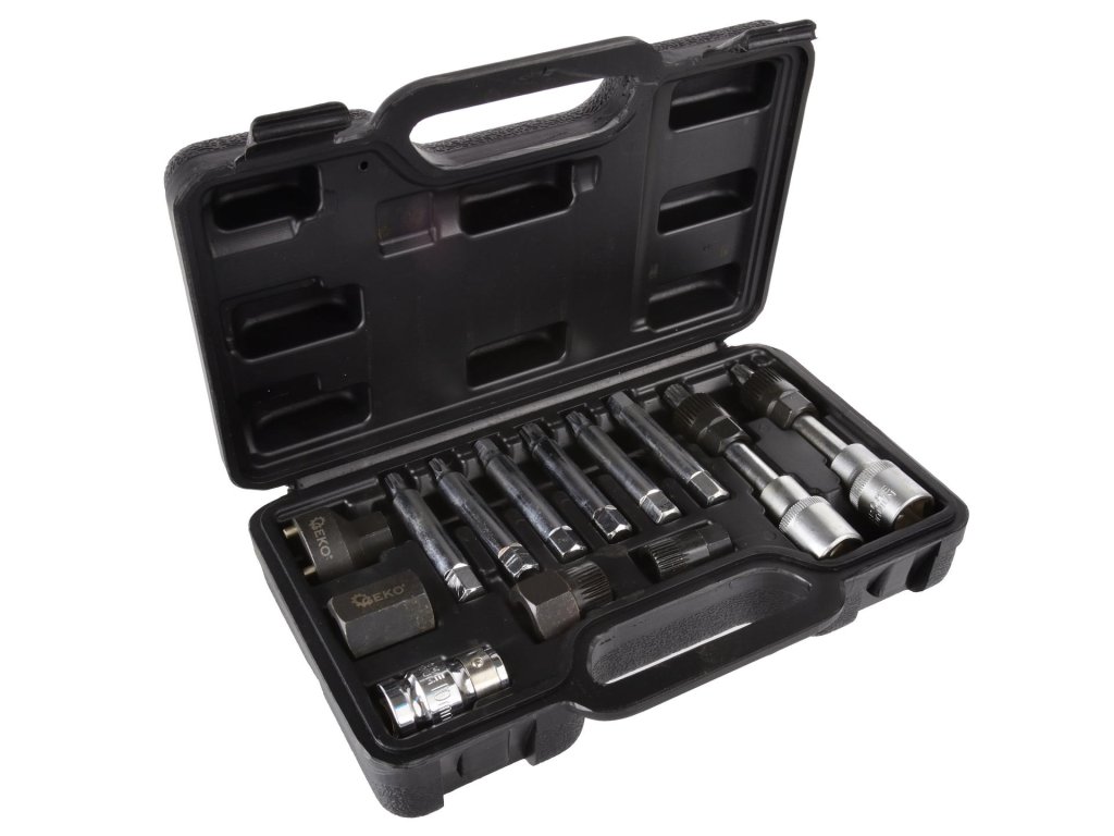 A készlet részei között találhatók olyan kulcsok, amelyek lehetővé teszik a tárcsa rögzítő csavarának egyidejű eltávolítását és a kuplunggal ellátott kerék rögzítését. Ennek köszönhetően az alternátorokkal végzett munka gyors és hatékony. A készlet kompatibilis a VW, Audi, Seat, BMW, Mercedes és Ford autókkal, így rendkívül univerzális szerszám széles körű alkalmazásokhoz.