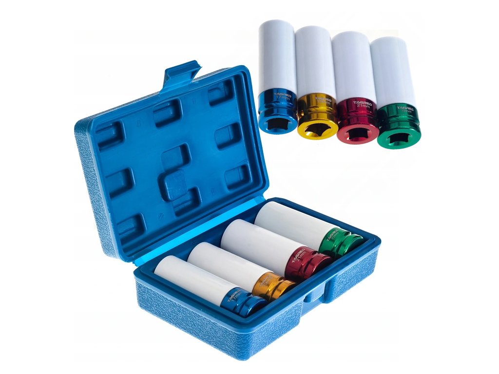 Alumínium kerekekhez való dugókulcs készlet 17, 19, 21, 22 mm, ütvecsavarozó adapterekkel