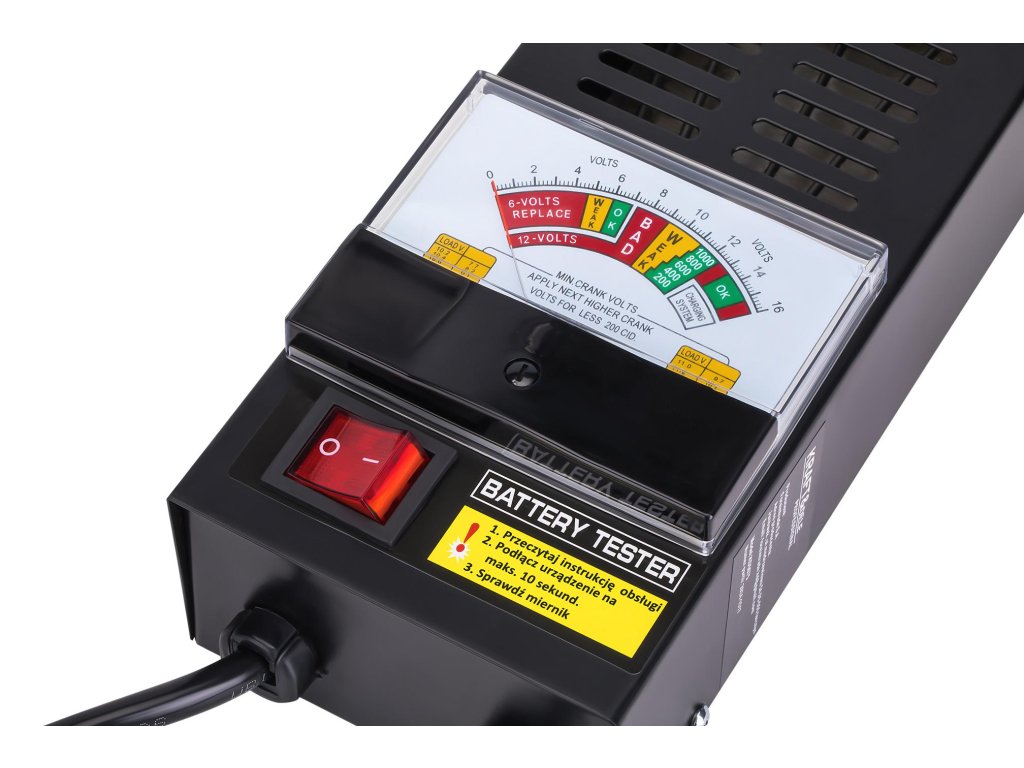 A teszter lehetővé teszi az akkumulátor töltöttségi állapotának ellenőrzését és az elhasználódás mértékének meghatározását.