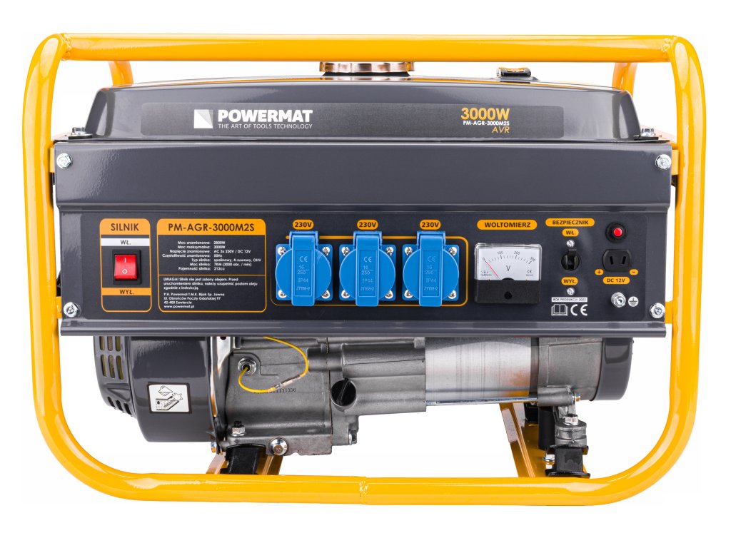 A generátor 230V (3 aljzat) váltóáramot és 12V (1 aljzat) egyenáramot állít elő. Ideális megoldás olyan helyzetekben, amikor az elektromos energia hiányzik a terepen. Voltmmérővel és biztosítékokkal felszerelt, a generátor olajszint érzékelővel rendelkezik, amely automatikusan leállítja a motort túl alacsony olajszint esetén. A generátor indítása kézi, indítókábel segítségével történik. Ez a generátor alkalmas kézműves munkákhoz, építkezésekhez, kiskertekhez és kertekhez, ideális elektromos szerszámok, szivattyúk és világítás táplálásához.