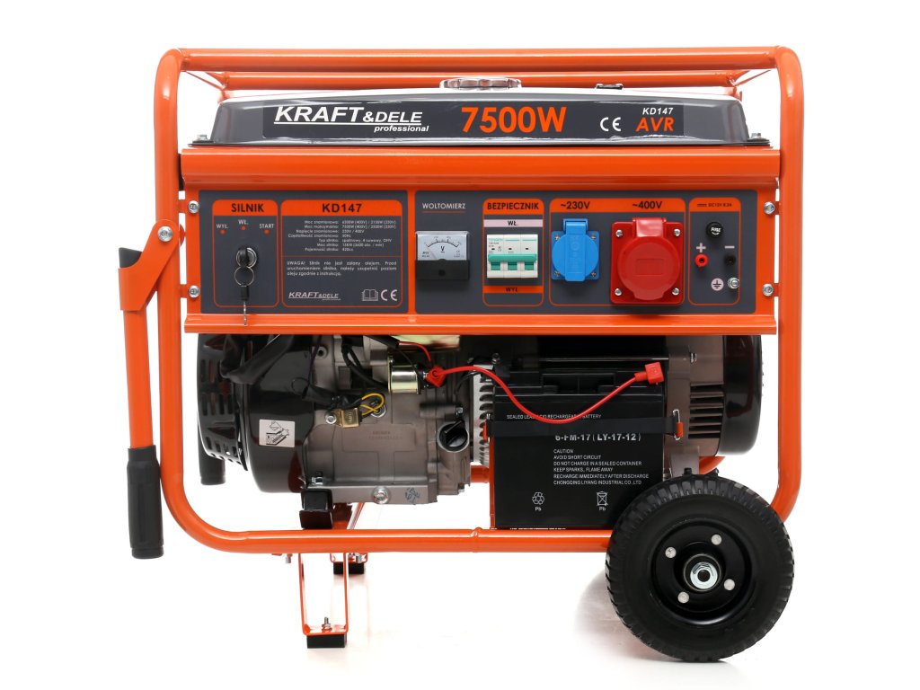 Áramfejlesztő 7500 W 230/400 V KD147 – Professzionális felhasználásra tervezett berendezés, ideálisan alkalmas vállalatok számára, gazdaságokban, építési területeken, vendéglátó-ipari létesítményekben, családi házakban és számos más helyen. Az aggregát a legmagasabb minőségű anyagokból készül, a részletekre is nagy figyelmet fordítva. A súly 85 kg ezt a professzionális kivitelezést bizonyítja; ez nem műanyag játék!