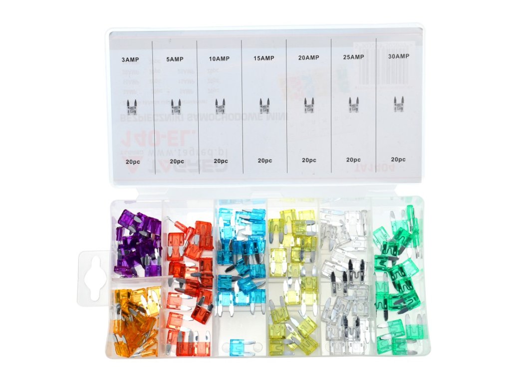 Ez egy egyedülálló és praktikus autó biztosíték készlet, amely ideális minden autós műhely számára, vagy akár a hétköznapi autótulajdonosoknak is. A készlet mini biztosítékokat tartalmaz, amelyek áttekinthetően vannak rendezve és színkódoltak a áramértékek szerint, mindez egy műanyag rendező dobozban található.