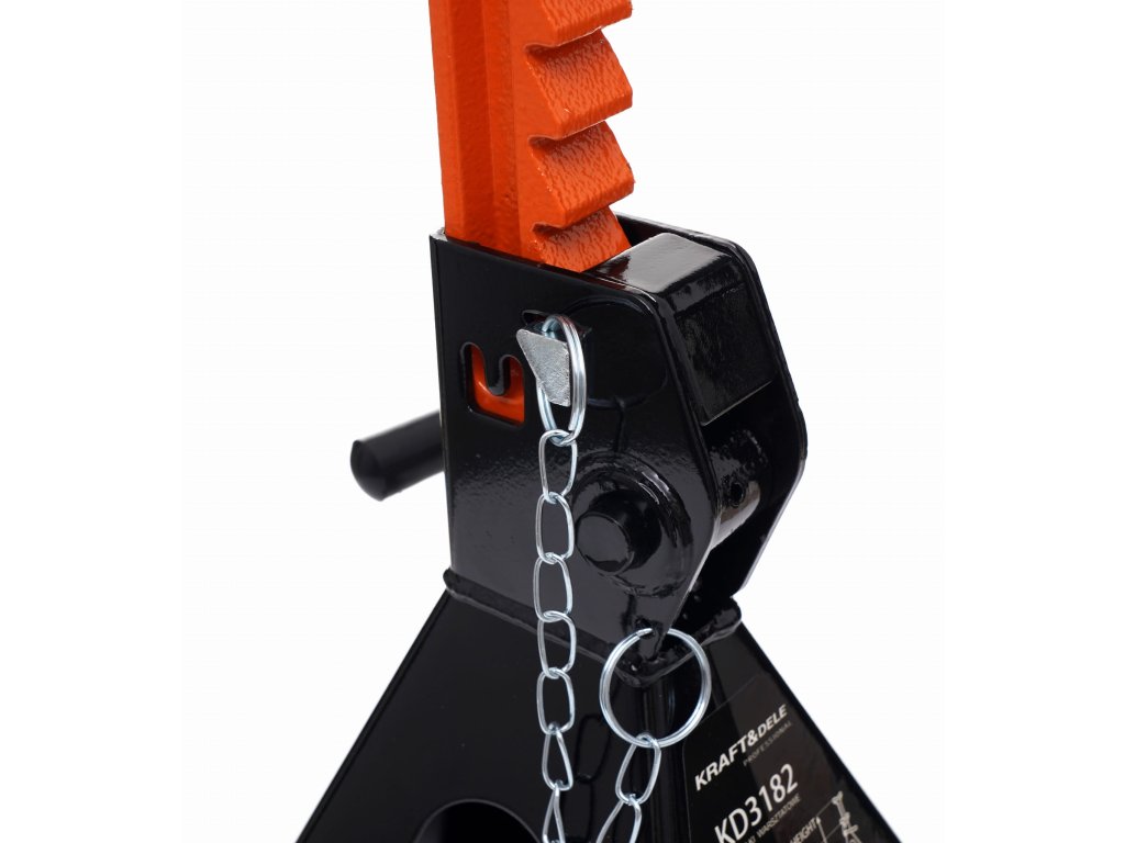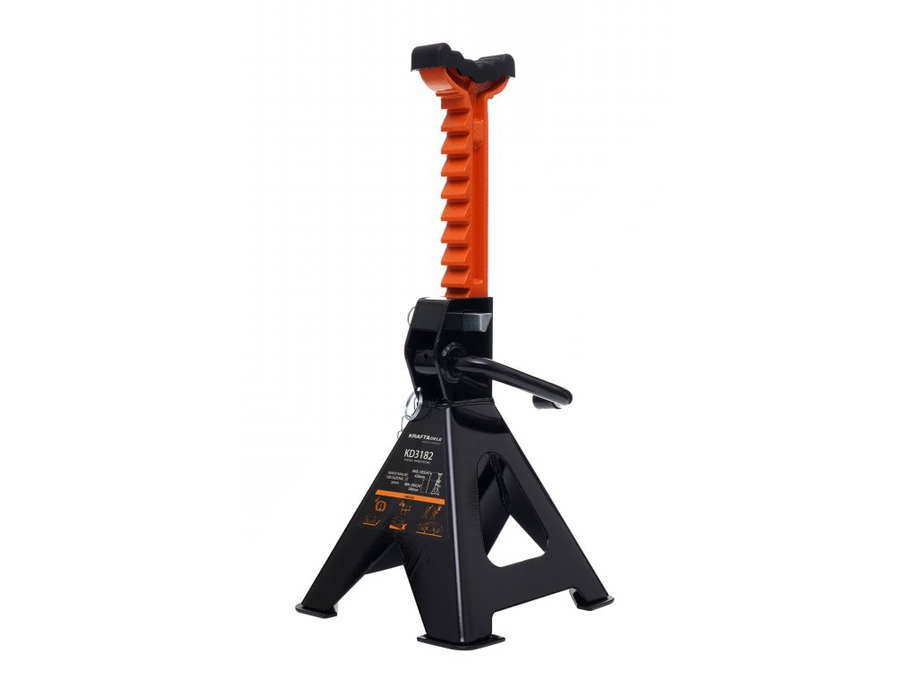 A Kraft&Dele márkájú autóemelő bakok, KD3182 modell, maximális teherbírás 2 t. Magas minőségű acélból készülnek, amely ellenáll a mechanikus sérüléseknek, a hajlításnak és a műhelyben előforduló vegyi anyagok hatásainak.