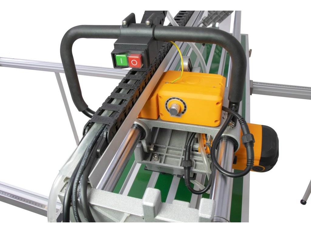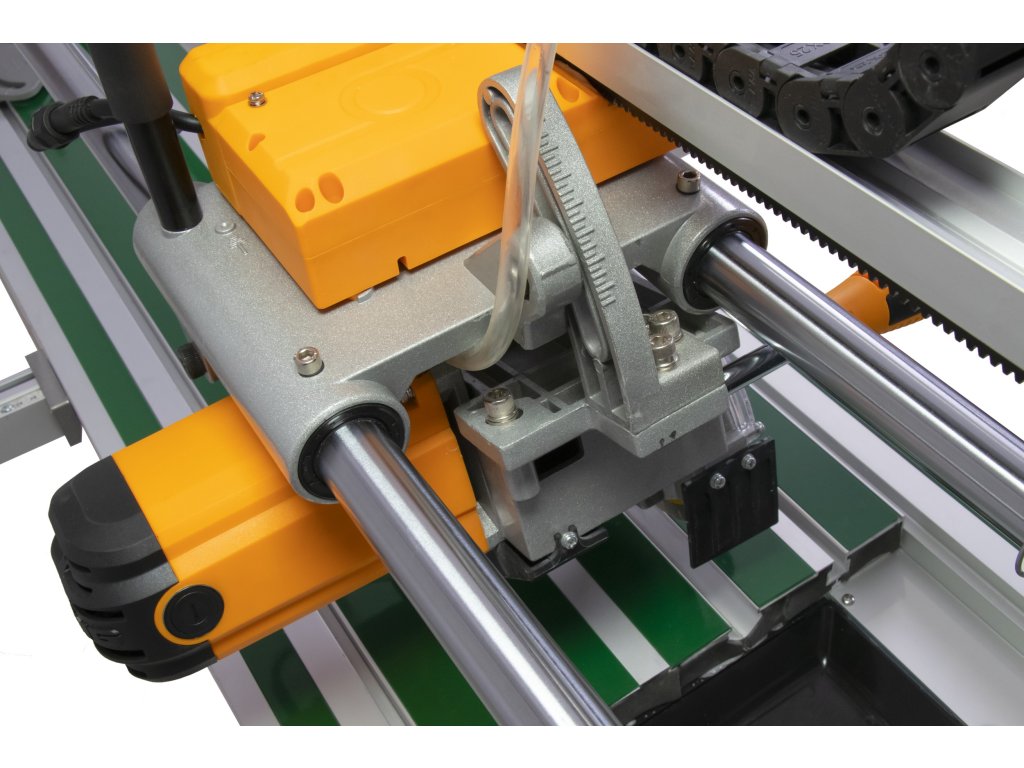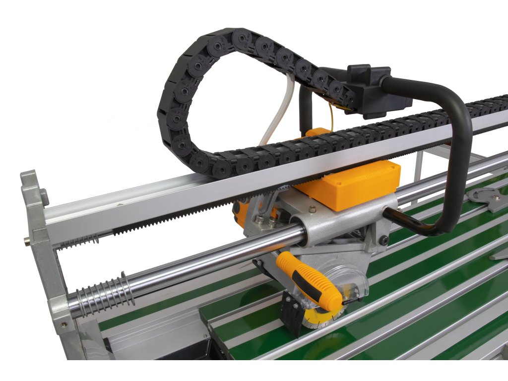 Ez a konstrukció garantálja a megbízhatóságot és a mechanikai sérülésekkel szembeni ellenállást. Az asztal masszív alumínium öntvényből készült, csúszásgátló felülettel rendelkezik, amely biztosítja a stabilitást vágás közben és megkönnyíti a vágó vezetését az anyagon.
