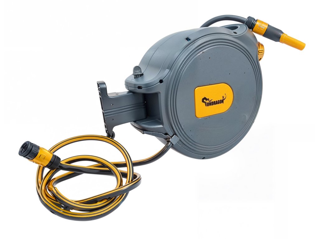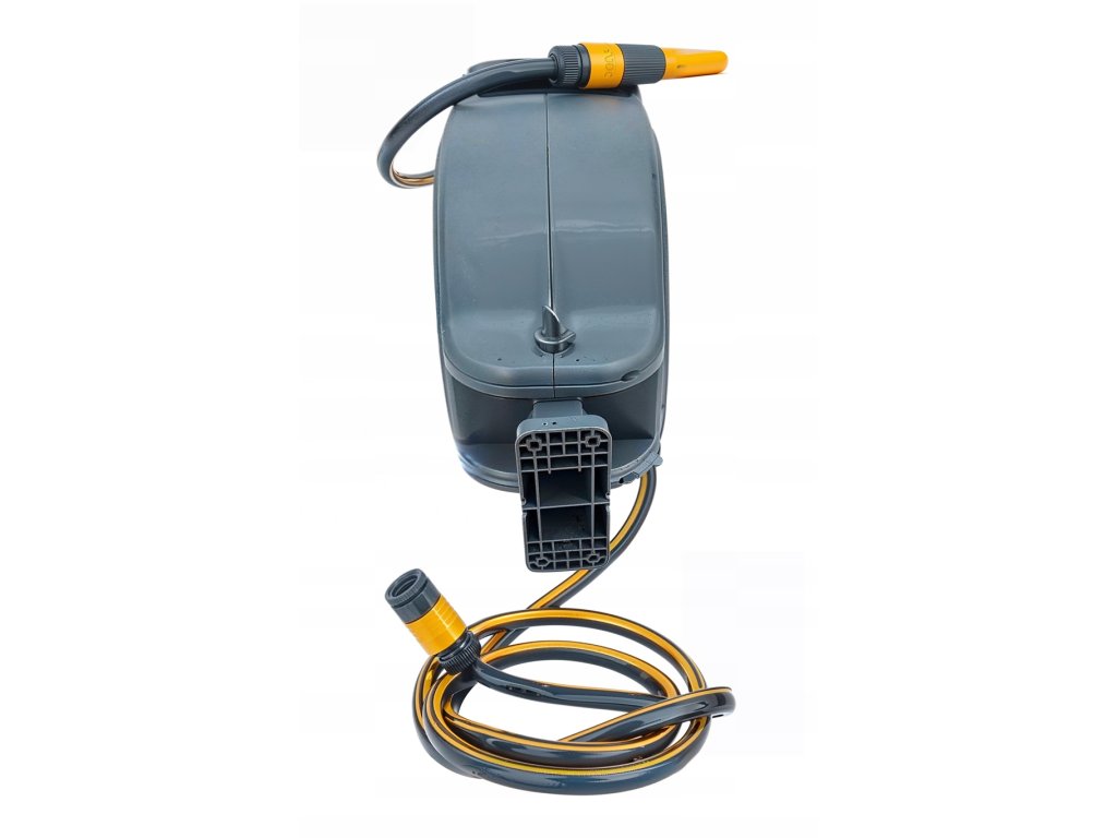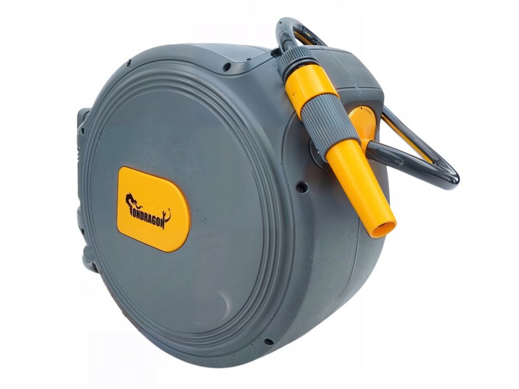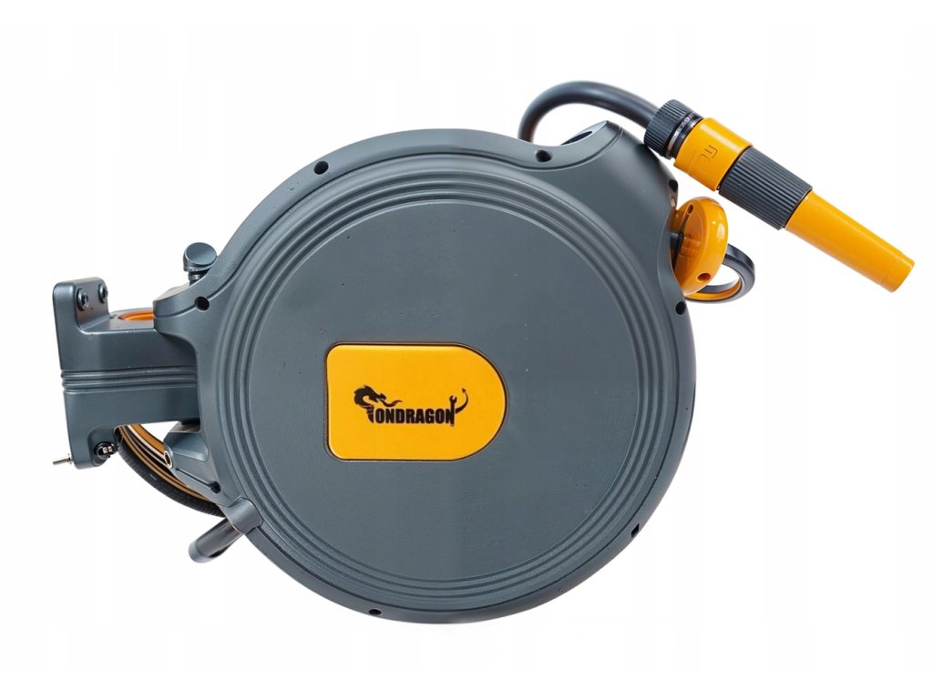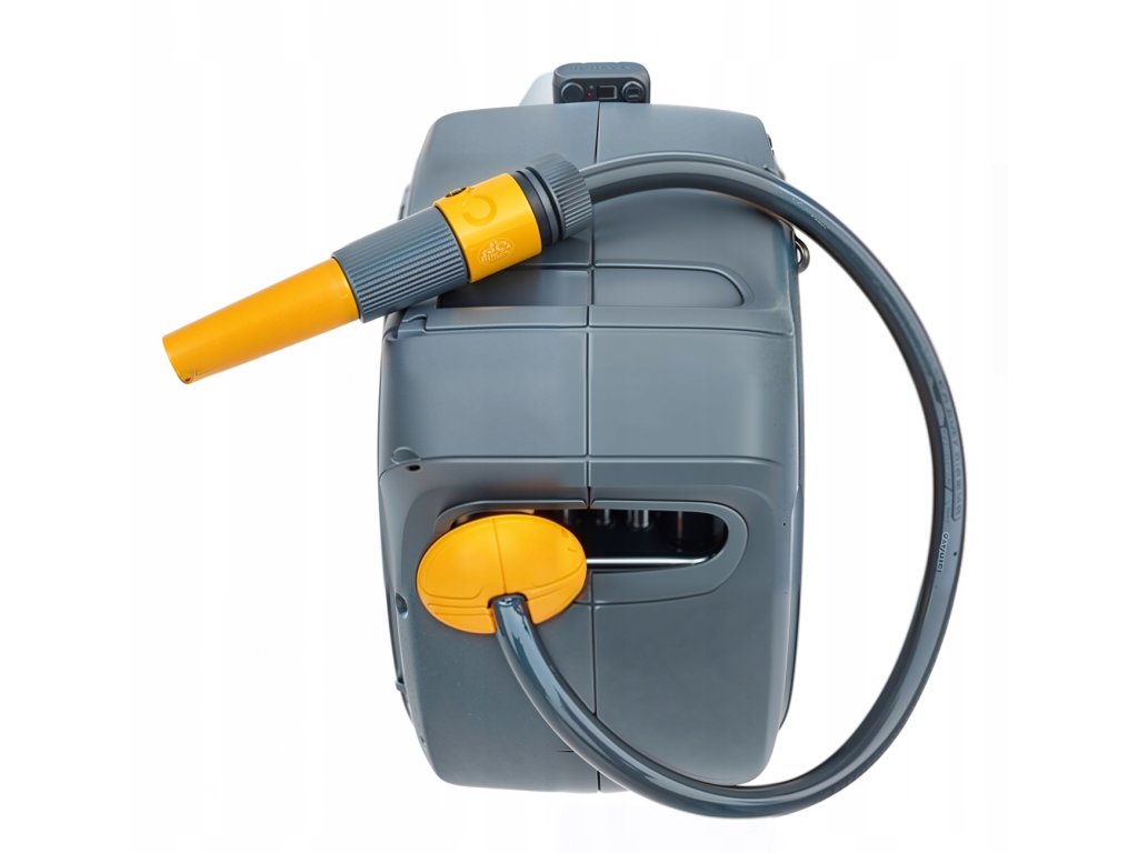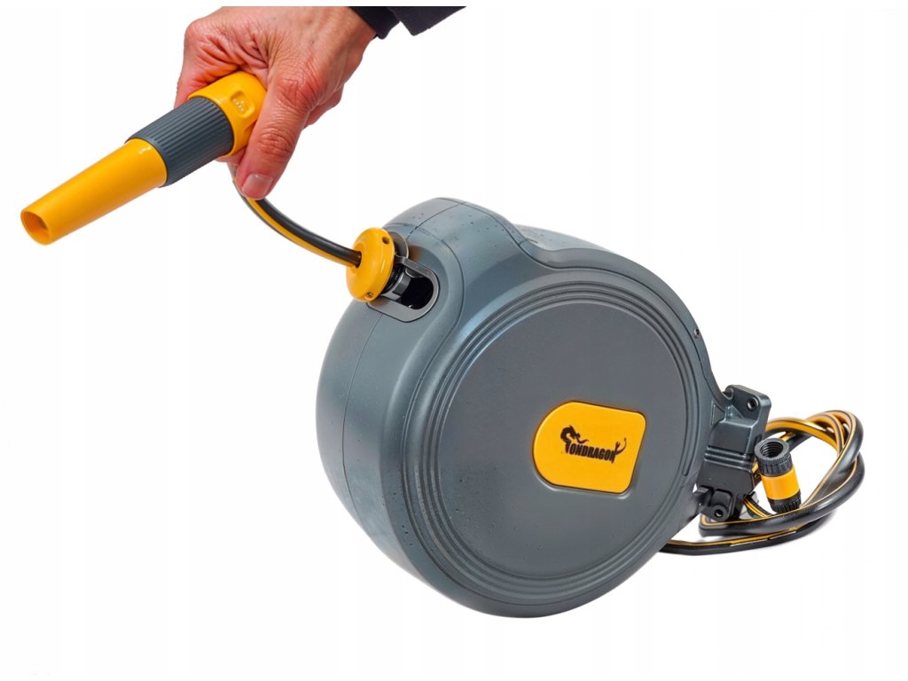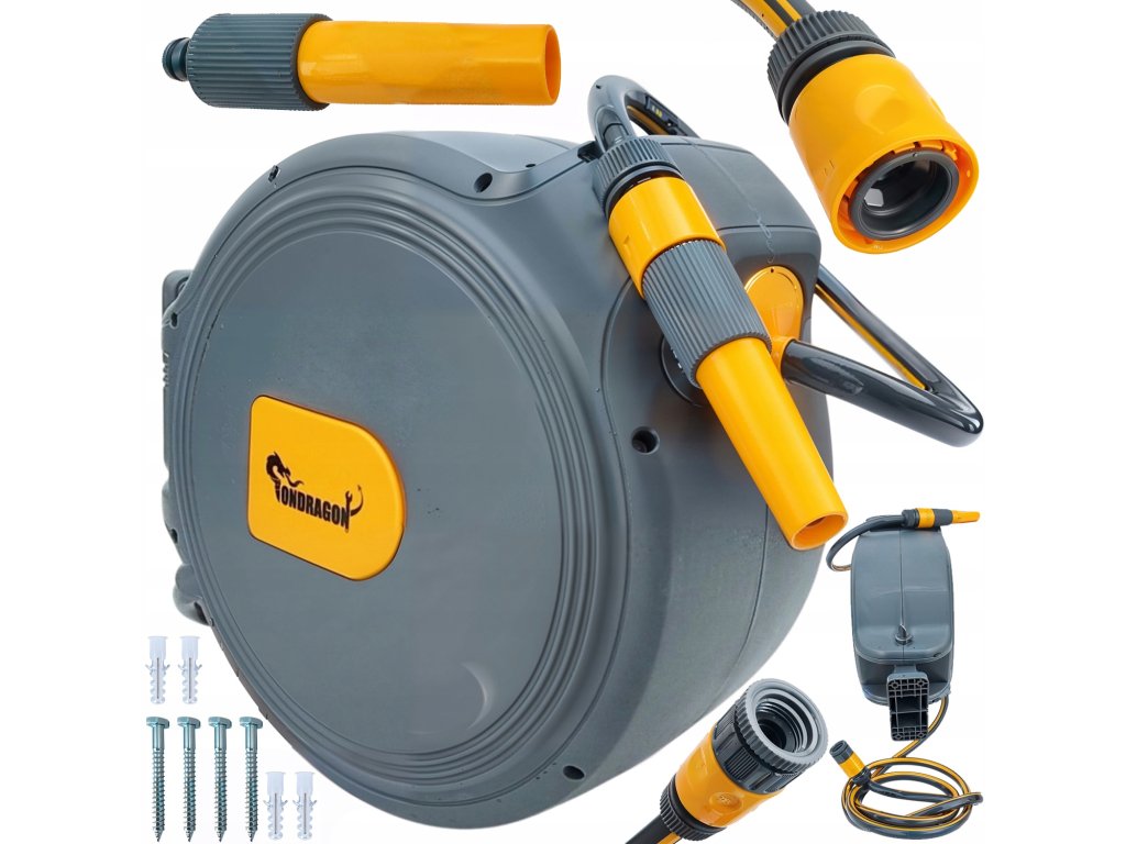 Az automatikus locsolótömlő feltekercselő ideális segítőtárs a hatékony és kényelmes öntözéshez. Az automatikus rendszernek köszönhetően a tömlő munka után simán és biztonságosan feltekeredik. A 20 m hosszúságú tömlő és a forgatható fali tartó segítségével kényelmesen öntözheti a kis és közepes kerteket. A szerkezet tartós PVC és PP anyagból készült, ami hosszú élettartamot és időjárásállóságot biztosít.