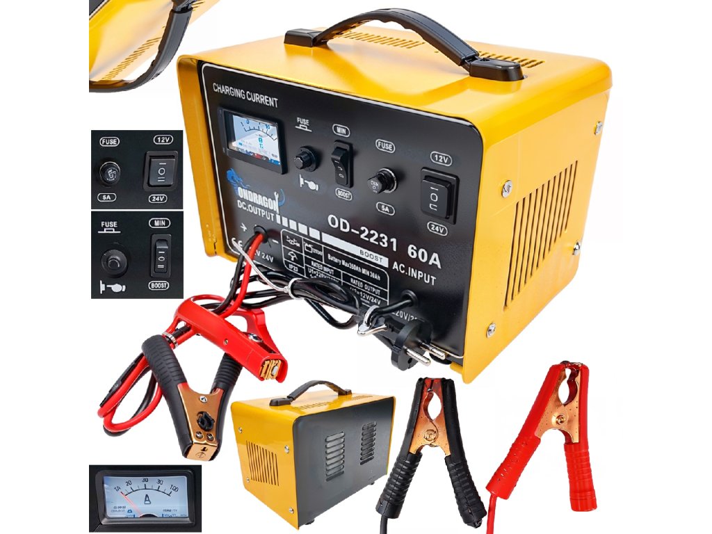 Autós akkumulátor töltő 12/24V 60A indítási funkcióval