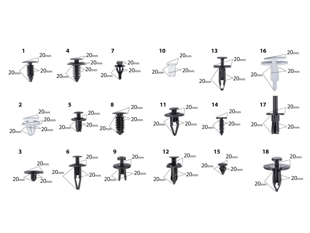 Ez a sokoldalú készlet megoldja a kárpitok, lökhárítók, sárvédők és egyéb műanyag alkatrészek rögzítési problémáit az autójában!