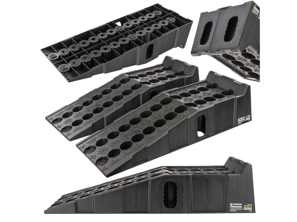 Az autós feljárók stabil és tartós szerkezettel rendelkeznek, amely nem hajlik meg és nem repedezik. A hosszú és széles lemez a legtöbb személygépkocsihoz alkalmas. A finom rámpa és a gumis talp biztosítja a kerekek biztonságos felhajtását a platformokra anélkül, hogy elmozdulnának. A magas megállító meggátolja a véletlenszerű lecsúszást a feljáró végéről.