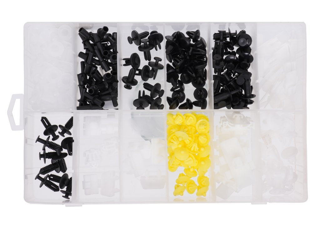 Mindegyik kapocs praktikusan kényelmes rekeszekkel ellátott dobozban van tárolva, ami megkönnyíti a szervezést és a szükséges kapocs gyors elérését. Ez a termék azt célozza, hogy maximális kényelmet biztosítson az autója javítása és karbantartása során.