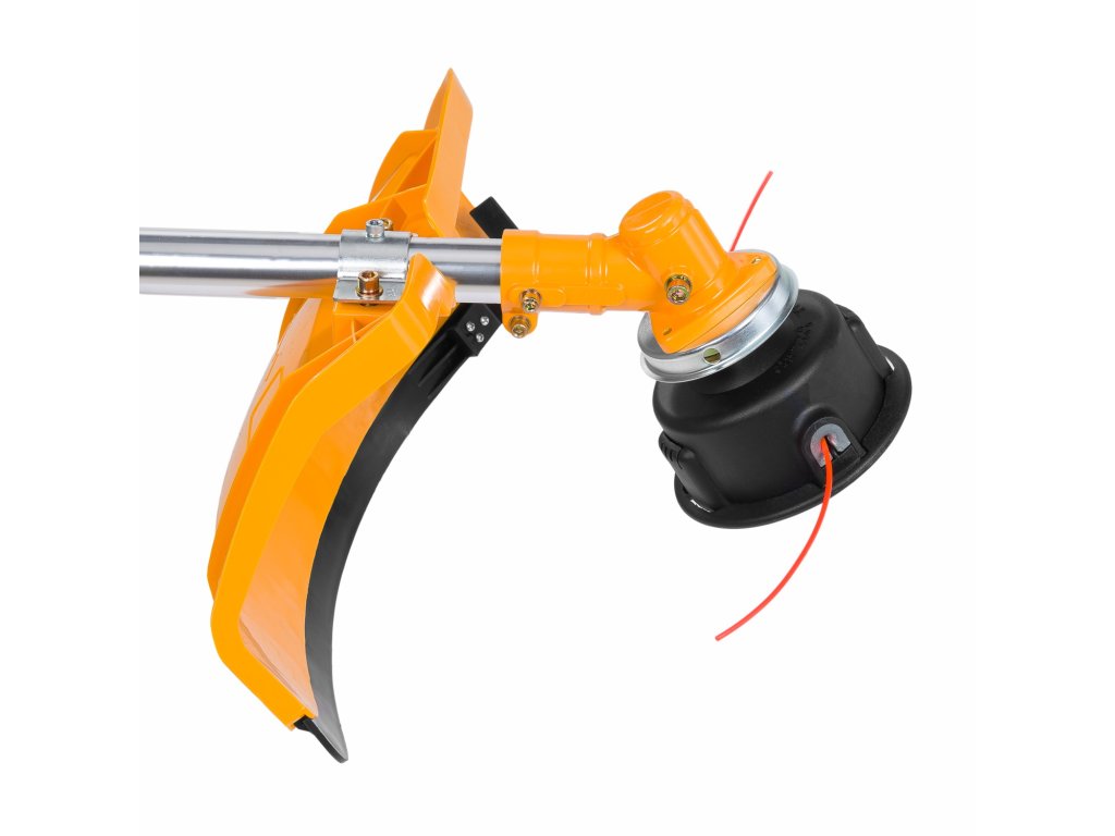 A fej védelme késsel van ellátva a felesleges szál rövidítésére és megerősített érintkező résszel a földdel.