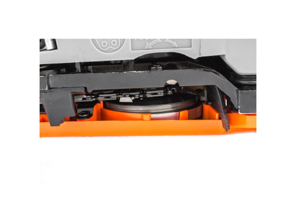 A láncfűrész elsőrangú alkatrészekből készült, amelyek robusztus alumínium és magnézium házban helyezkednek el.
